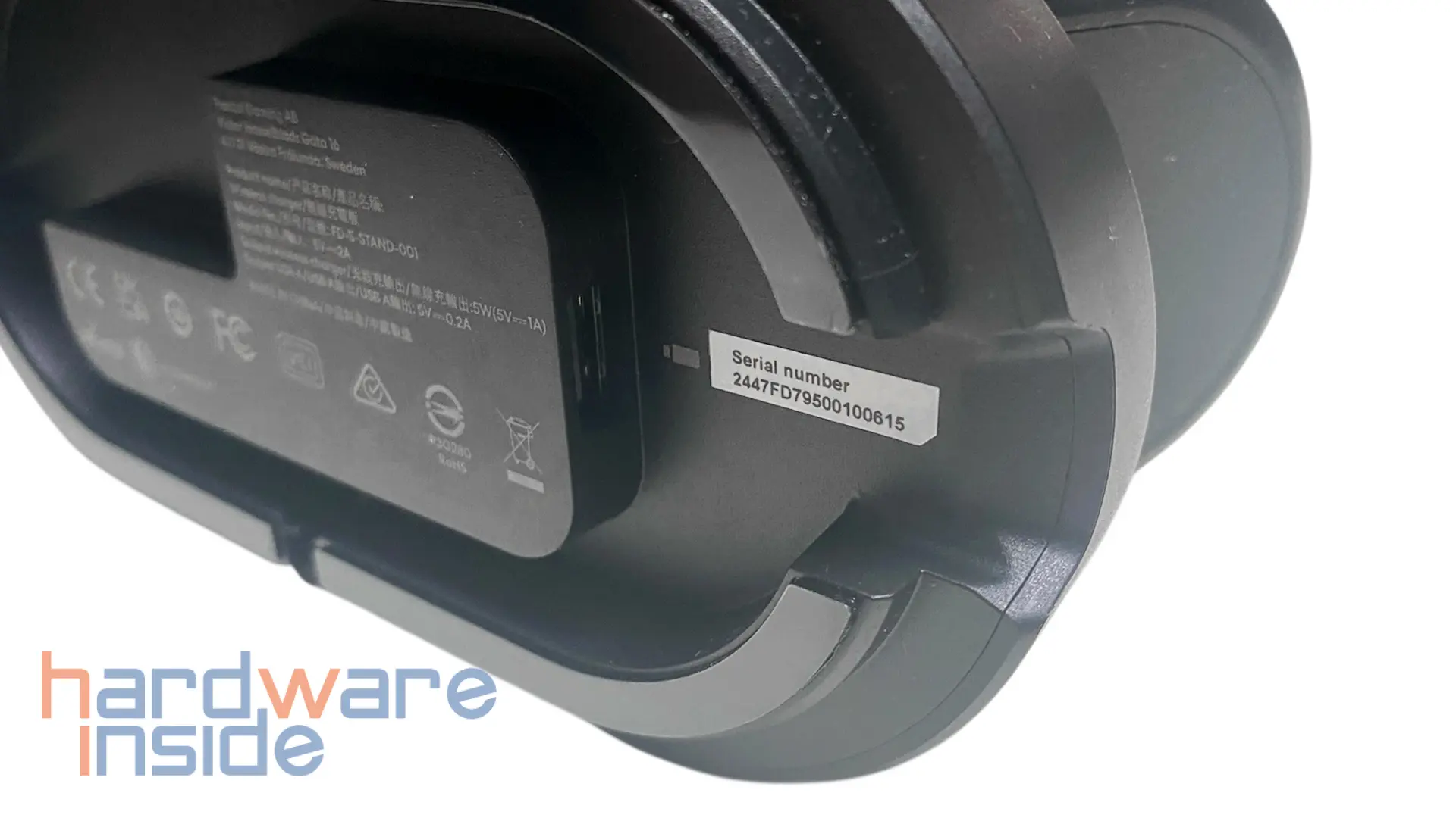 An der Unterseite ist eine USB-C und eine USB-A Buchse. Der Funkempfänger steckt im Auslieferungszustand in der USB-A-Buchse und kann auch dort verbleiben, wenn die Dockingstation über den USB-C-Anschluss zum Beispiel mit dem PC verbunden wurde, da diese für die Ladefunktion genutzt wird. Der Runde Stand-Fuß dient gleichzeitig auch als Kabelführung.