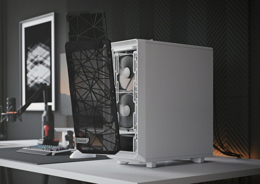 25.02.2021 – Der PC-Gehäuse Hersteller Fractal hat heute die Veröffentlichung des Meshify 2 Compact angekündigt. Basierend auf der von der Meshify Serie gewohnten Ausrichtung auf intelligente Raumnutzung und hervorragenden Airflow, haben die Entwickler von Fractal mit der Meshify 2 Serie eine lange Liste neuer Funktionen eingeführt, darunter ein USB 3.1 Typ-C Anschluss, schraubenfreie Tempered Glass Seitenteile, ein vollständig abnehmbares Top Panel für komfortableren Zugriff zum Innenraum und einen Nylon-Filter an der Front, der für zusätzlichen Airflow abgenommen werden kann.