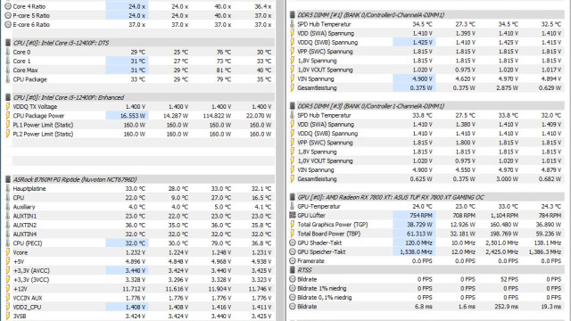 Die Integration in unser Testsystem erfolgt relativ unkompliziert. Zunächst werden sämtliche erforderlichen Kabel mit den entsprechenden Buchsen des DAGGER PRO verbunden, bevor dieser in das Gehäuse eingebaut wird. Mithilfe der Software HWINFO64 werden die unterschiedlichen Ausgangsspannungen während der Benchmark-Tests, im Gaming-Betrieb sowie im Leerlauf analysiert.