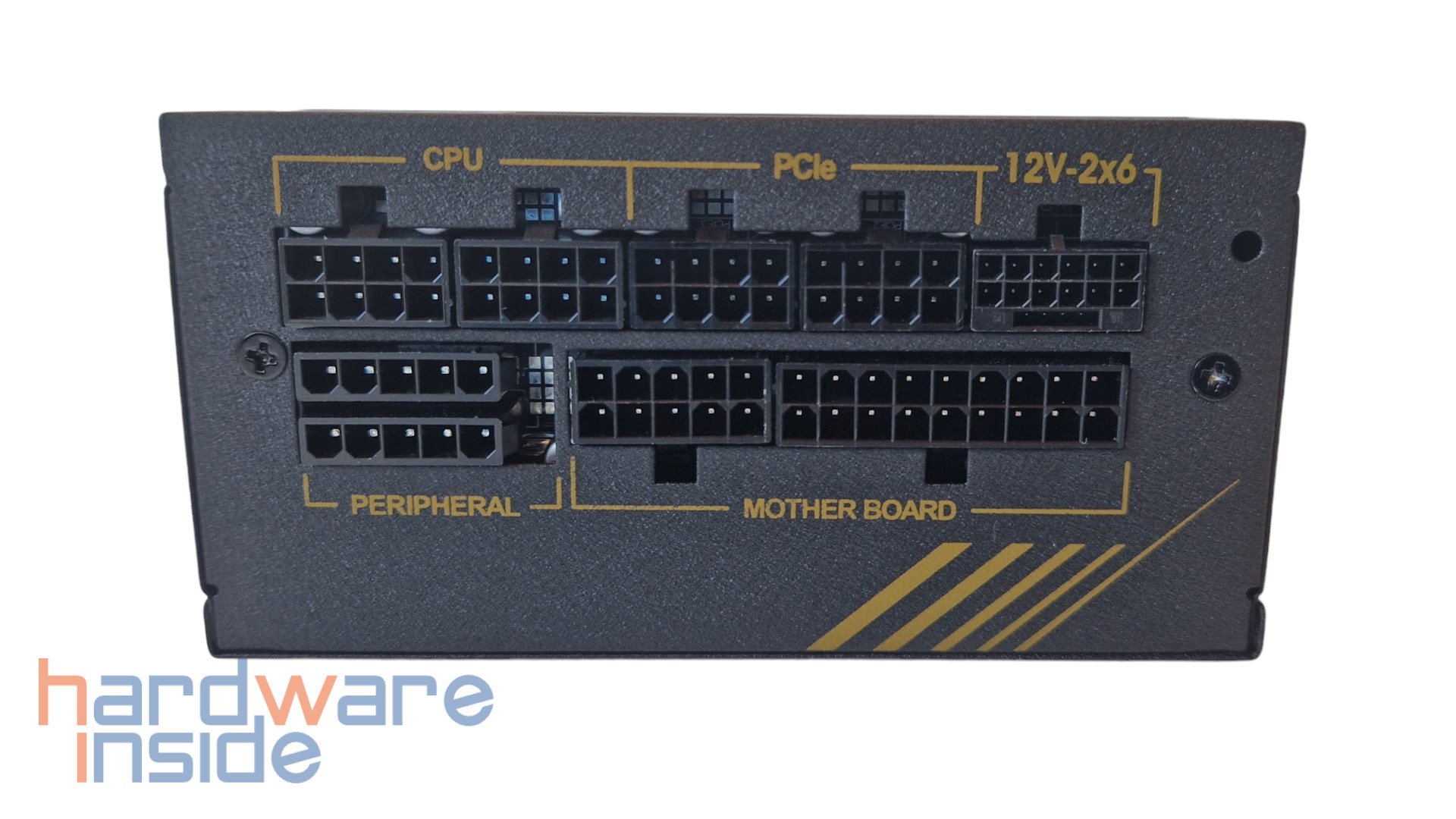 Die Anschlüsse des FSP DAGGER PRO 850W befinden sich an der Front des Netzteiles. Die Beschriftung der Steckplätze ist sauber in einem Goldton aufgedruckt, beschränkt sich auf das Wesentliche und ist selbsterklärend. Durch die voll modularen Anschlüsse werden nur die Kabel angeschlossen, die auch benötigt werden. Das DAGGER PRO implementiert zudem einen nativen PCIe Gen. 5 Anschluss, für den Betrieb einer RTX-GPU (Nvidia).