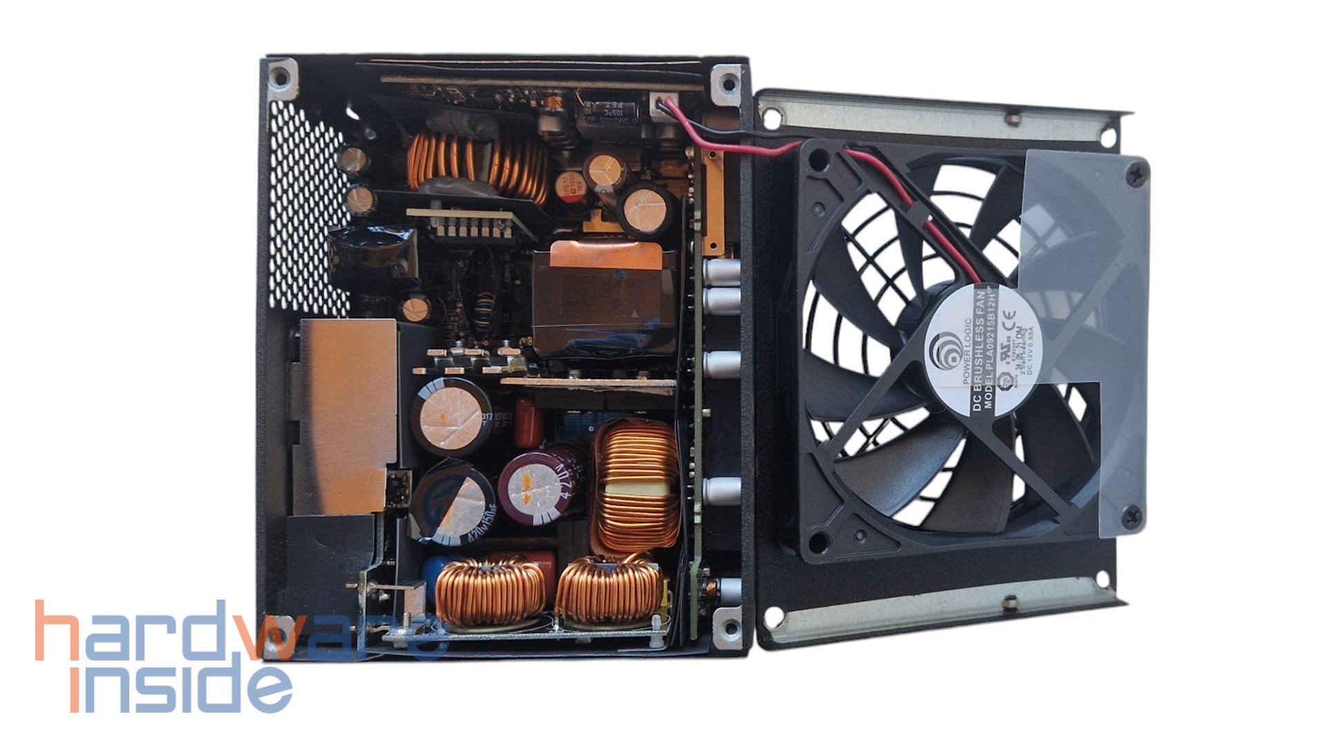 Bei einer Betrachtung des Innenlebens offenbart sich das schwarze Leiterplattenlayout mit den integrierten elektronischen Komponenten. Hierzu zählen hochwertige Bauteile wie japanische Elektrolyt- und Polymerkondensatoren. Die Leistungstreiber wurden sorgfältig in Kombination mit großzügigen schwarzen Kühlkörpern angeordnet, um eine effiziente Ableitung der erzeugten Wärme zu gewährleisten. Die PRO-Serie kommt mit einer einzigen +12 V-Schiene aus, welche Grafikkarten individuell Leistung bietet, um eine Überlastung der Schiene zu vermeiden.