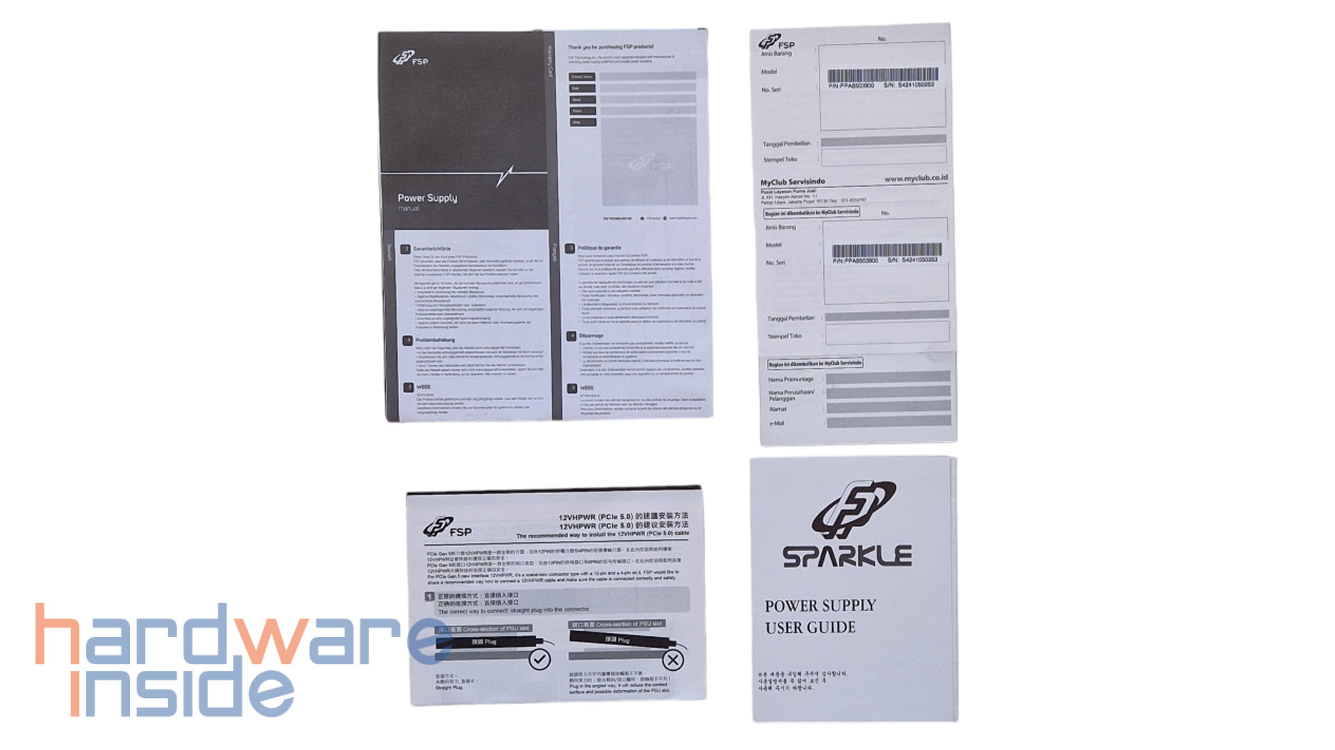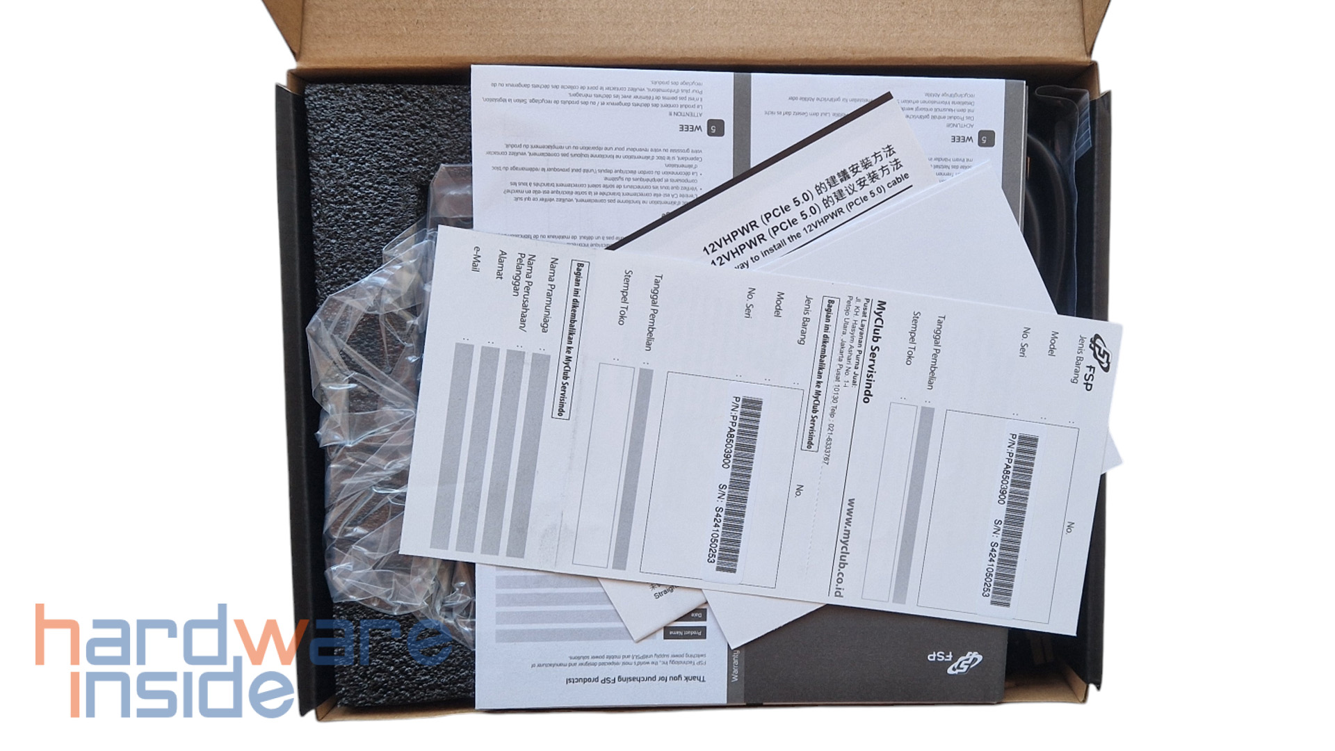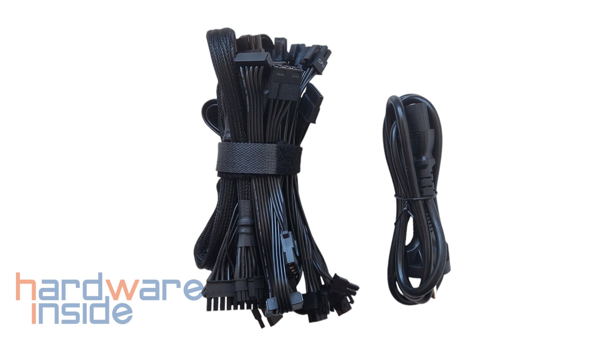 FSP stellt sämtliche möglicherweise erforderlichen Kabel für ein System in Verbindung mit dem Netzteil zur Verfügung. Abgesehen von dem dickeren mit Gewebe ummantelten PCIe 5.0 (12VHPWR) Kabel handelt es sich bei allen anderen um Flachbandkabel, was die Flexibilität und Handhabung beim Verlegen der Kabel begünstigt.