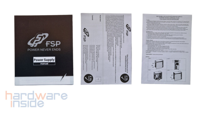 Nachdem wir das FSP Hydro PTM PRO 1350W Netzteil, das sicher und einzeln, mit zwei Schaumstoffeinlagen und in einer zusätzlichen Folie verpackt ist, befreit haben, liegt noch folgendes Zubehör dem Lieferumfang bei: