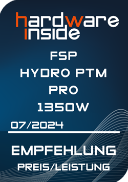 FSP hat mit dem Hydro PTM PRO 1350W ein herausragendes Netzteil entwickelt, welches im Eco-Betrieb den Energieverbrauch reduziert und bei weniger als 30 % äußerst geräuscharm arbeitet. Die Verarbeitungsqualität lässt keine Wünsche offen und die spezielle Oberflächenbeschaffenheit ermöglicht einen Einsatz unter Bedingungen mit einer Luftfeuchtigkeit von bis zu 95 %. Mit seinen zwei PCIe Gen5.1-konformen Anschlüssen für beispielsweise zwei RTX-4090-GPUs bietet es eine bemerkenswerte Leistungsfähigkeit. Die leistungsstarke +12V-Single-Rail mit einer Stromstärke von 112,5 A gewährleistet eine konstante und zuverlässige Leistung auch im Bereich des Overclocking, unterstützt durch die Zertifizierung nach dem Standard „80+ Platinum“ sowie eine Herstellergarantie von zehn Jahren. Aktuell wird das Netzteil zum Preis von rund 229 € im Preisvergleich gelistet. Betrachtet man die Verarbeitung, die Leistung, die Zertifizierung und das Gesamtpaket im Ganzen, so vergeben wir gerne unseren Preis-/Leistungs-Award.