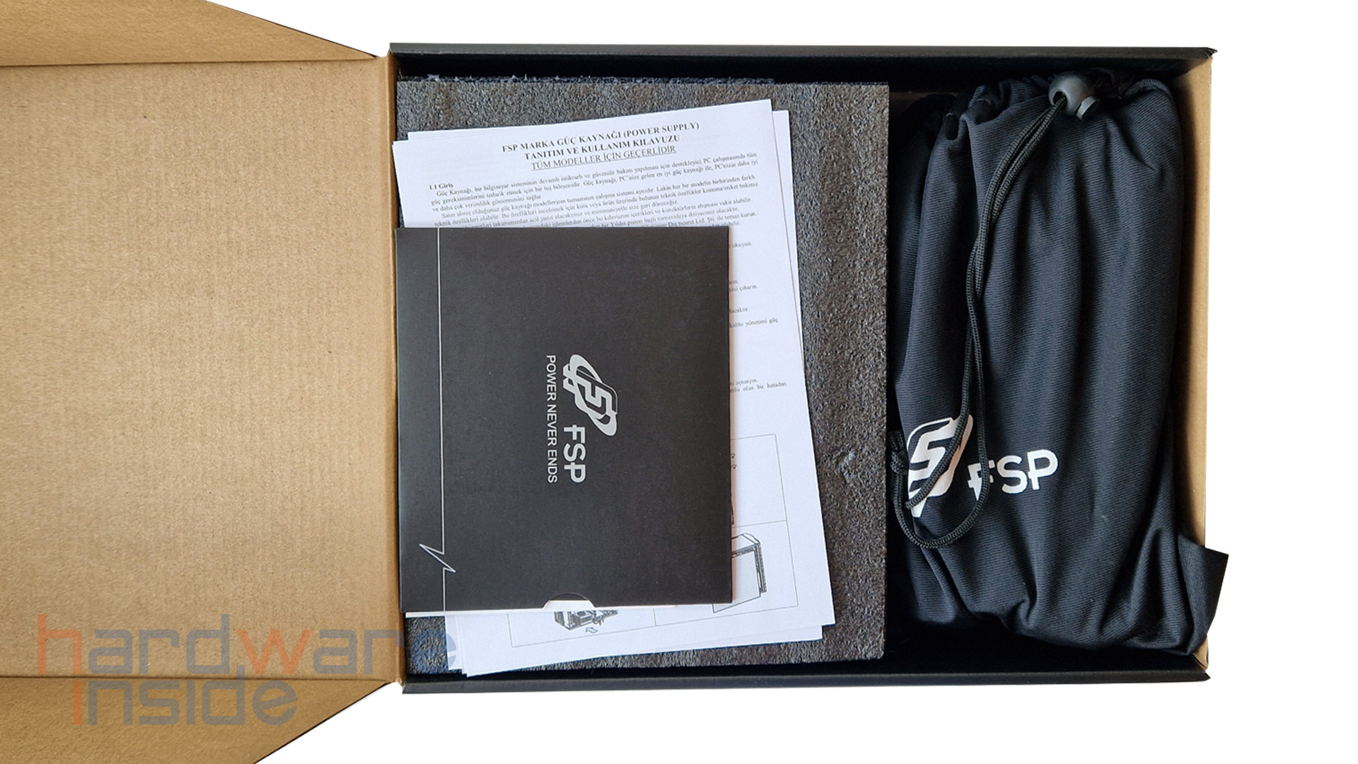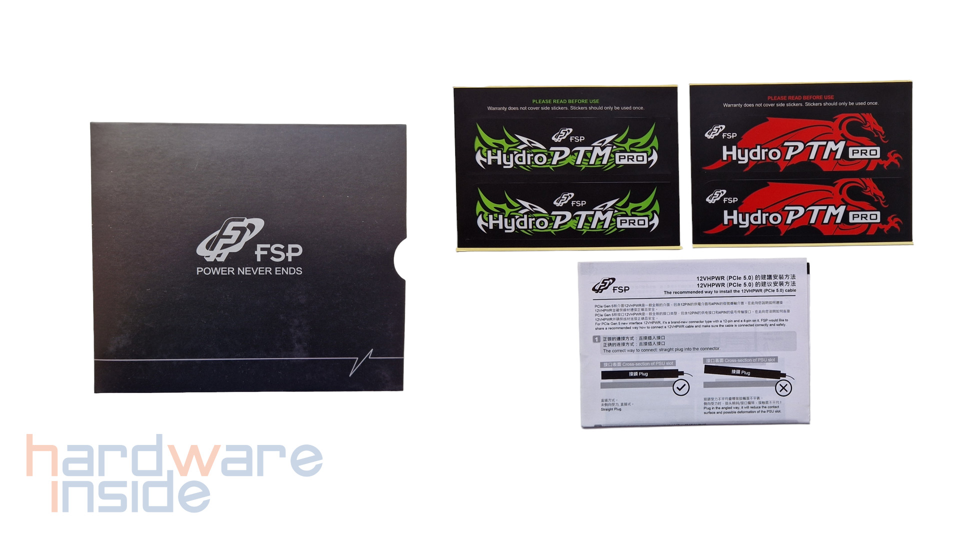 Nachdem wir das FSP Hydro PTM PRO 1350W Netzteil, das sicher und einzeln, mit zwei Schaumstoffeinlagen und in einer zusätzlichen Folie verpackt ist, befreit haben, liegt noch folgendes Zubehör dem Lieferumfang bei: