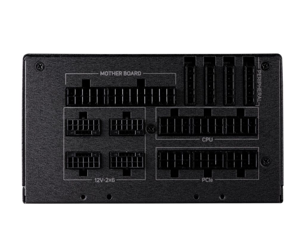 Das Cannon Pro 2500 W erreicht mit 230 V-Wechselstrom eine 80-Plus-Platinum-Effizienz. Zum Funktionsumfang gehören umfassende Schutzmechanismen: Über- und Unterspannungsschutz, Überstrom-, Überlast- und Überhitzungsschutz, Kurzschluss-, Einschaltstrom- sowie Leerlaufschutz. An Anschlüssen bietet das Netzteil einen 24-Pin-ATX-Stecker, drei 4+4-Pin-EPS, vier 12V-2×6-Anschlüsse mit jeweils bis zu 600 W Leistung, elf 6+2-Pin-PCIe-Stromanschlüsse, zehn SATA- und sechs Molex-Stecker. Für die Kühlung sorgt ein 135 mm-Lüfter mit Fluid-Dynamic-Bearing-Technologie.