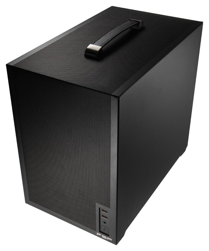 Mit der S210 präsentiert FSP ein kompaktes Micro-ATX-Gehäuse mit einem Volumen von nur 23 Litern. Trotz der geringen Größe (350 × 212 × 310 mm) lassen sich Grafikkarten bis 340 mm Länge und CPU-Luftkühler bis 170 mm Höhe verbauen. Das Gehäuse besteht aus 0,7 mm starkem SPCC-Stahl, ergänzt durch eine Seitenwand aus Temperglas. Mesh-Flächen an Front und Deckel verbessern den Luftstrom, ein Tragegriff sorgt für grundlegende Mobilität.