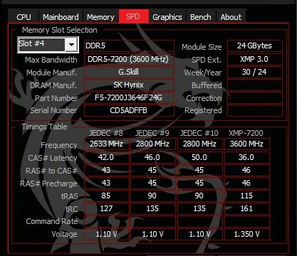 | Getestete Latenz (XMP/EXPO) | 36-46-46-115 |