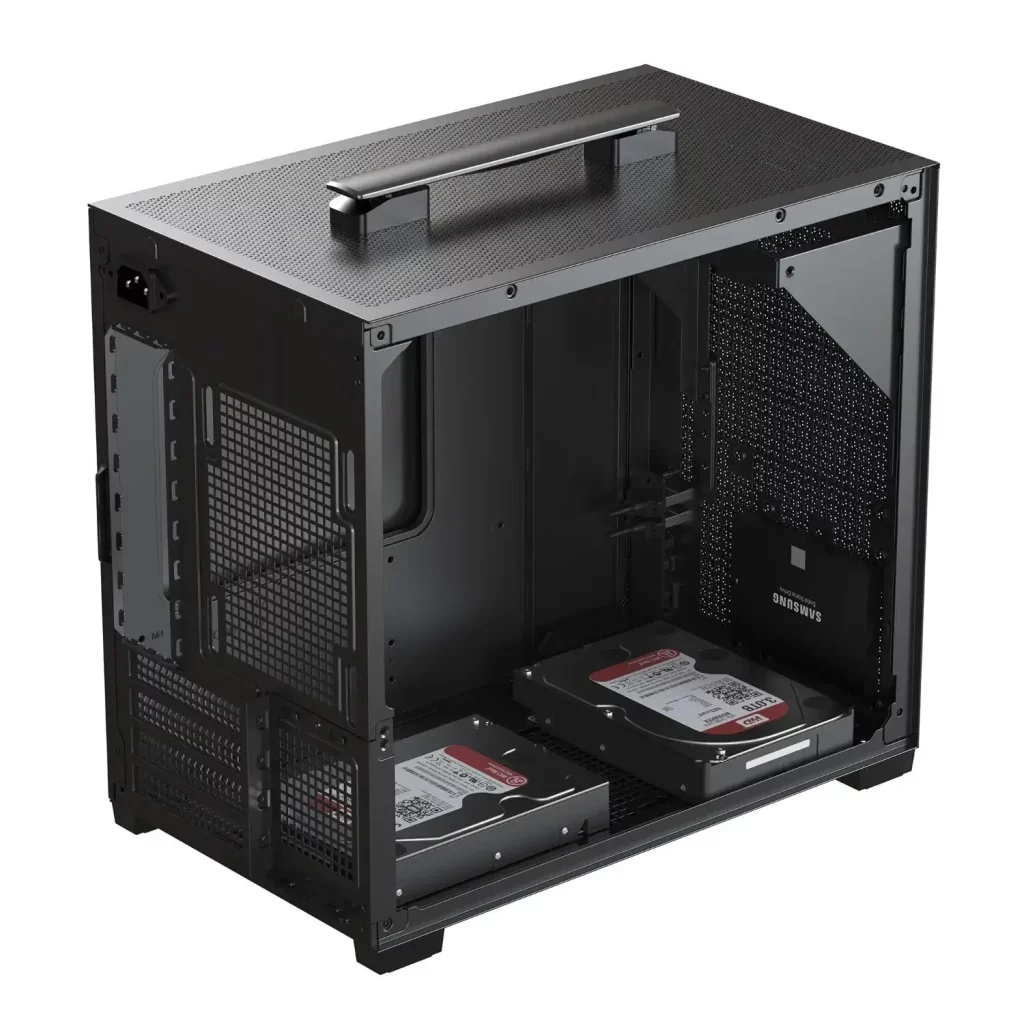 Das T240 unterstützt Mini-ITX- und Micro-ATX-Mainboards und bietet vier vollwertige PCIe-Erweiterungsslots – ein nicht selbstverständlicher Punkt in dieser Größenklasse. Galax gibt eine maximale Grafikkartenlänge von 330 mm sowie eine CPU-Kühlerhöhe von bis zu 178 mm an, wodurch auch größere Luftkühler und viele Full-Length-GPUs problemlos Platz finden.