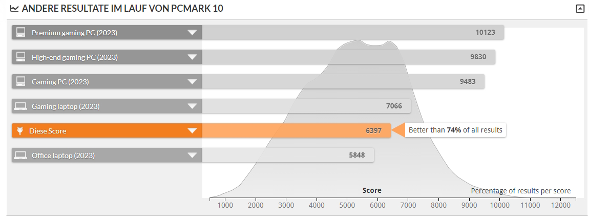 Die Ergebnisse von PCMARK 10 geben Anwendern eine Vorstellung davon, wie gut ein Computer in der Lage ist, alltägliche Aufgaben zu bewältigen. Dieser Benchmark ist besonders nützlich, um die allgemeine Benutzererfahrung zu bewerten, da er realitätsnahe Szenarien simuliert. PCMARK 10 sortiert den GEEKOM A5 Mini PC zwischen einem Office- und einem Gaming-Notebook ein. Mehr Details zum Testlauf findet ihr HIER.
