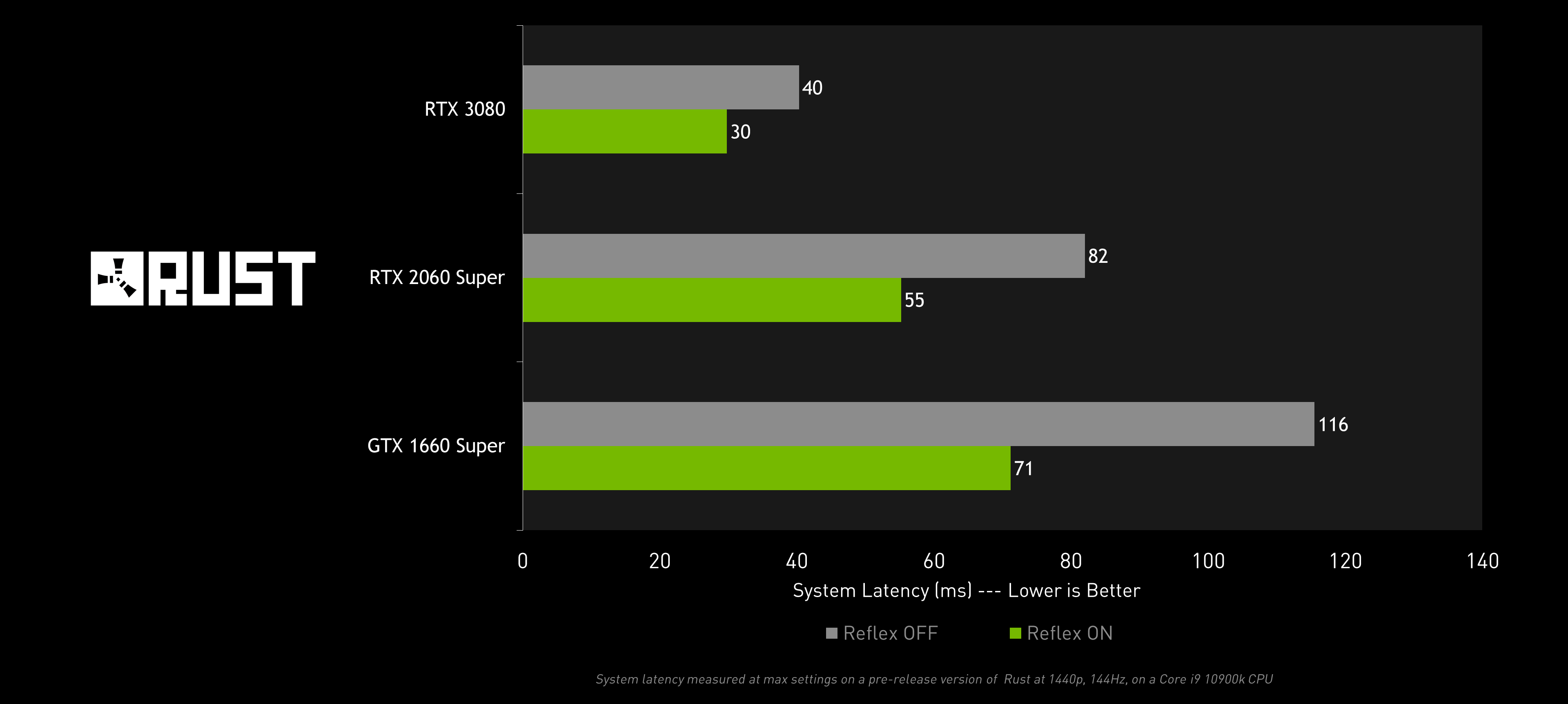 Eine um genau diese Sekundenbruchteile verbesserte Zielerfassung kann den Unterschied zwischen Sieg und Niederlage ausmachen. Mit aktivierten Reflex-Verbesserungen werden Spieler bei Rust eine verringerte Systemlatenz von bis zu 38 Prozent feststellen.
