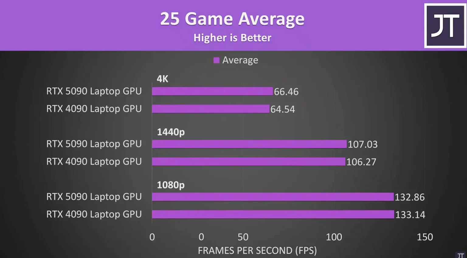 Die neue NVIDIA GeForce RTX 5090 für Laptops setzt verstärkt auf Energieeffizienz, erreicht jedoch nahezu die gleiche Gaming-Leistung wie das Vorgängermodell RTX 4090. Benchmarks in 25 populären Titeln bei 1080p, 1440p und 4K zeigen Unterschiede in der Bildrate von unter drei Prozent. Bei 1080p liegt die ältere RTX 4090 sogar leicht vorn mit 133,14 FPS gegenüber 132,86 FPS der 5090. In 1440p dreht sich das Bild minimal: 107,03 zu 106,27 FPS. Und in 4K ist der Unterschied kaum messbar. Wer also rein auf rohe FPS-Werte bei klassischem Raster-Rendering schaut, wird kaum Fortschritte feststellen.