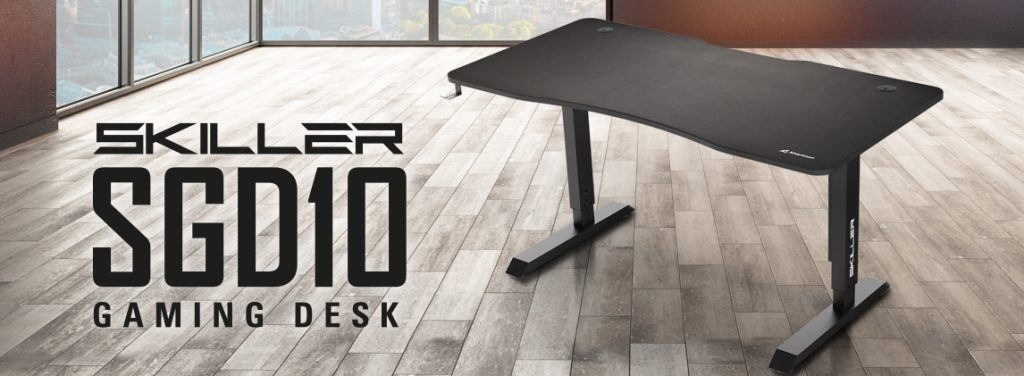 Der SKILLER SGD10 soll mit einer Tischplatte von 160 Zentimetern in der Länge und 80 Zentimetern in der Breite ausreichend Platz für den PC, mehrere Monitore, die gesamte Peripherie sowie einige weitere Büroutensilien bieten. Wer noch mehr Platz benötigt, kann zum SKILLER SGD20 greifen, dessen Tischplatte mit 180 Zentimetern in der Länge und 85 Zentimetern in der Breite noch etwas größer ausfällt. Beide Modelle weisen Dank einer robusten Rahmenkonstruktion aus Stahl eine Traglast von bis zu 100 Kilogramm auf und können darüber hinaus an den extra-großen Tischbeinen in drei Stufe in ihrer Höhe angepasst werden. Damit jeder Spielzug reibungslos verlaufen kann, hat der Hersteller beiden Modellen eine flächendeckende Mausmatte spendiert.