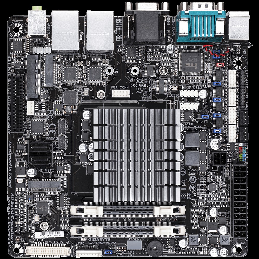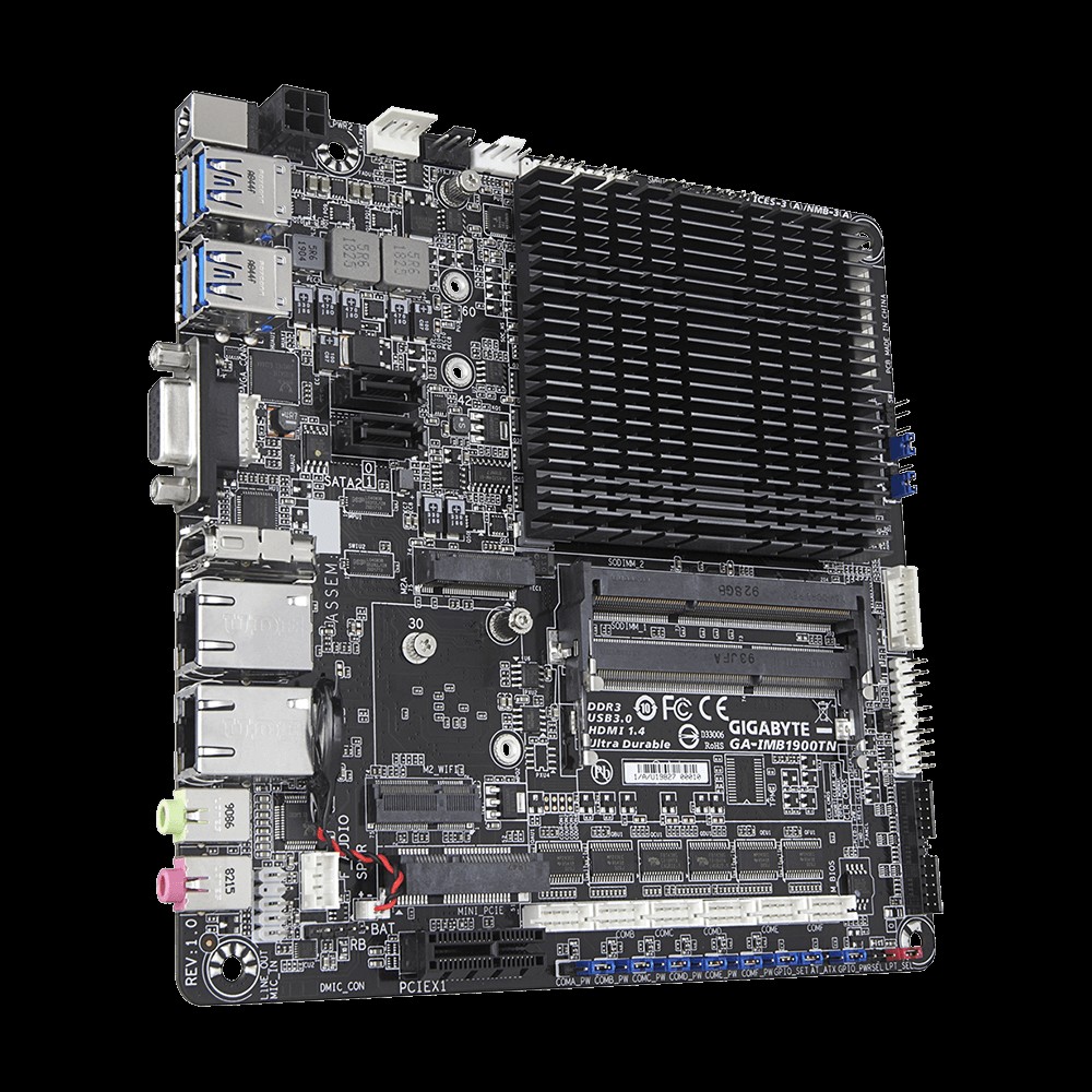 Die GA-IMB1900N und GA-IMB1900TN Motherboards sind dafür ausgelegt, einen stabilen Betrieb innerhalb einer weiten Temperaturspanne zwischen 0°C und 60°C zu gewährleisten. Ein integrierter Watchdog Timer erkennt Störungen automatisch und stellt das System wieder her. Hinzu kommt ein Trusted Platform Modul (TPM) zur Verbesserung der Datensicherheit. Dual Intel® LAN mit PXE Unterstützung, RS232/422/485 und USB 3.0 sind ebenfalls verfügbar.