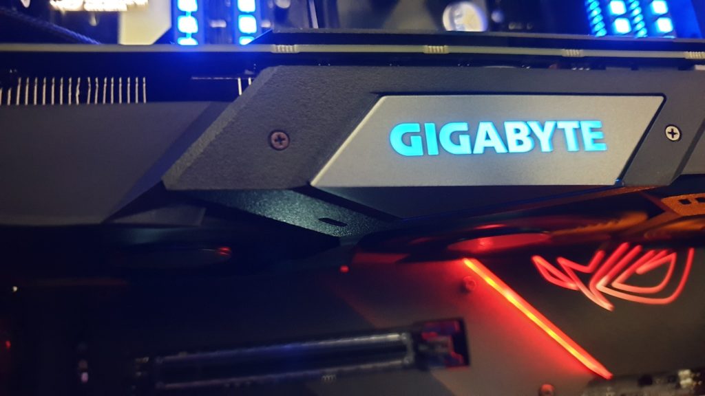 Auf der GIGABYTE RTX 2060 GAMING OC PRO 6G ist mittig eine RGB-Beleuchtung verbaut. Diese lässt den GIGABYTE Schriftzug erleuchten. Damit wir die RGB-Beleuchtung steuern können, benötigen wir die AORUS ENGINE Software. Diese finden wir in der aktuellsten Version auf der GIGABYTE Homepage. Mit dieser können wir recht einfach die RGB-Beleuchtung einstellen.
