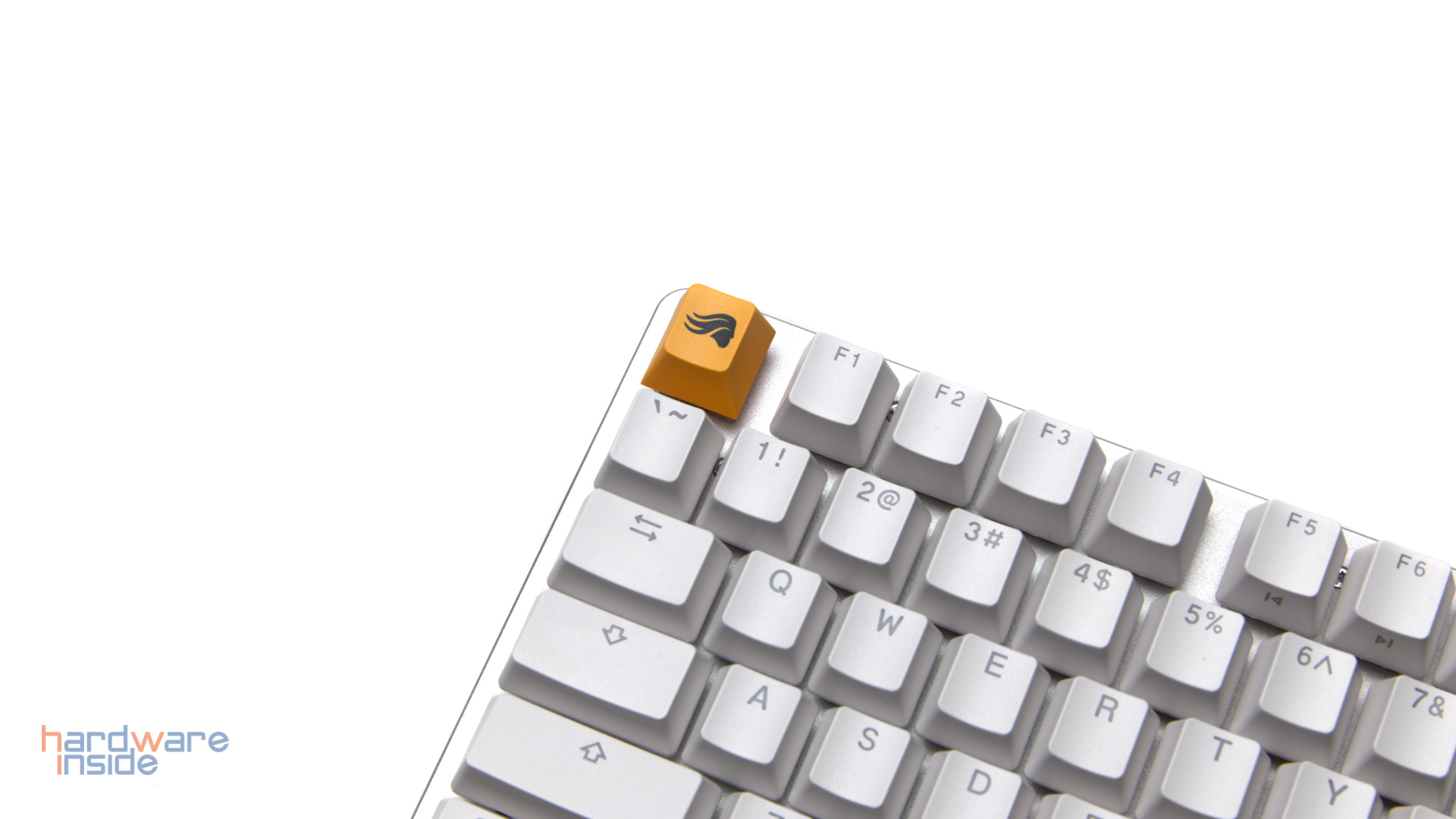 Da sowohl das Gehäuse als auch die Tasten in weißer Farbe erstrahlen, sticht die orangene mit Glorious-Logo versehene ESC-Taste als optisches Schmankerl besonders hervor. Wem das nicht gefällt, kann diese gegen die beigelegte Standard-Taste tauschen. Die Unterseite der Glorious GMMK 2 besteht aus Kunststoff, während der obere Teil aus Aluminium hergestellt wurde. Durch diese Platte aus Aluminium ist die Tastatur enorm verwindungssteif und kann auch mit höherem Druck auf die Tasten nicht gebogen werden. Weiter unten befindet sich ein Hot-Swap-PCB, welches per Tray Mount im Gehäuse befestigt wurde. Zwischen PCB und Topplate wurde ein Dämpfungsschaum gelegt, welcher Vibrationen aufnimmt und das entstehende Klangbild maßgeblich beeinflusst. Die Spaltmaße des Ober- und Unterteils sind hervorragend.