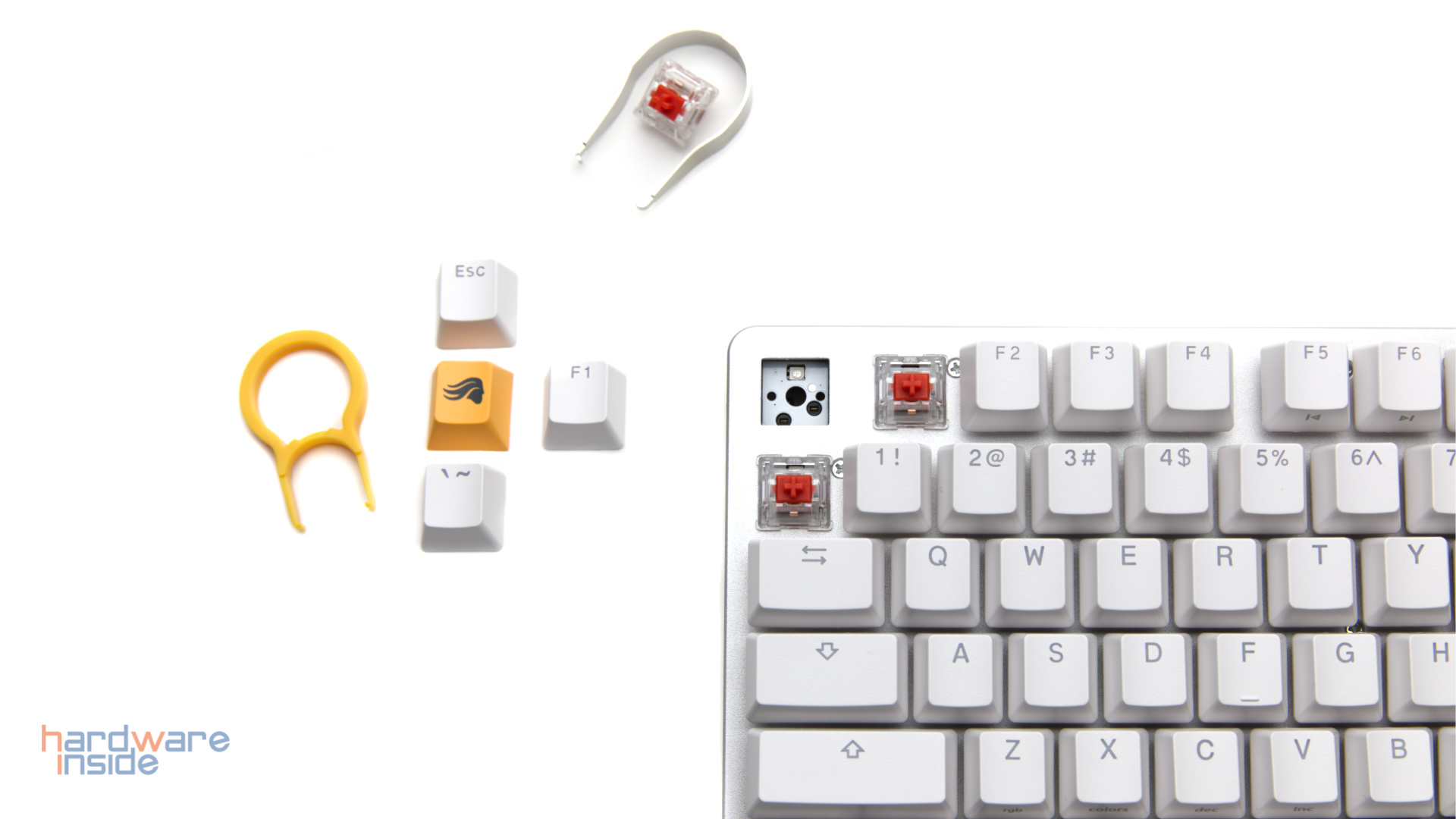 Alle Switches können ohne Probleme und mit dem beiliegenden Werkzeug entnommen werden. So ist es möglich, die linearen Schalter durch andere Varianten oder Modelle anderer Hersteller zu tauschen. Offiziell kompatibel sind zumindest die Glorious-eigenen Switches, die Cherry-MX sowie 5-Pin Schalter von Kailh. Ebenfalls erwähnenswert ist, dass bereits äußerst gute Stabilisatoren eingesetzt werden – welche ebenfalls geschmiert sind. Die Leertaste klingt wie der Rest der Tasten ansprechend und hat nahezu kein Spiel, klappern sucht man auch vergebens. An dieser Stelle ist es also nicht nötig, weiteres Geld in die Hand zu nehmen.