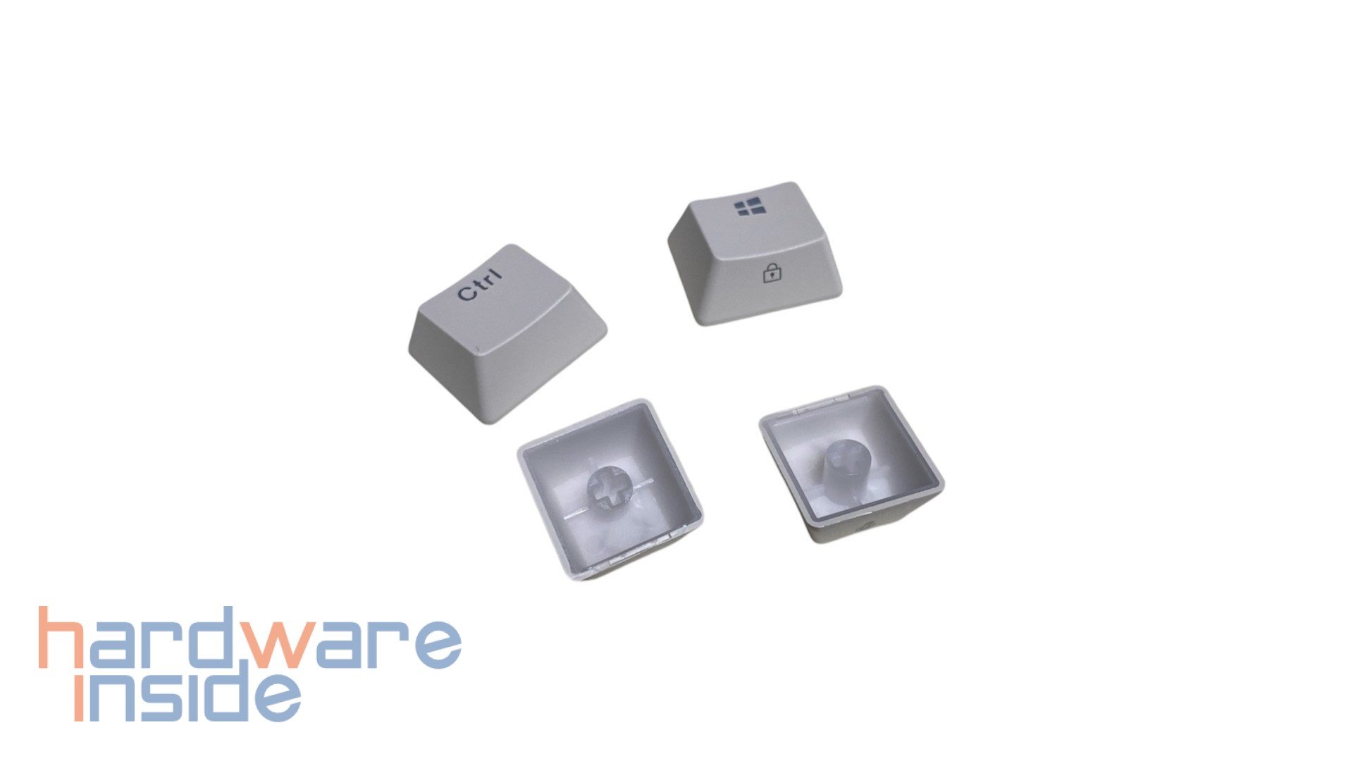 Die Tastenkappen sind optisch passend aus weißem ABS-Kunststoff hergestellt. Die Fertigung erfolgt dabei im Doubleshot-Verfahren. Dabei besteht der untere Korpus aus einem milchigen durchscheinenden ABS-Kunststoff, der im Betrieb ausgeleuchtet werden kann. Auf dem milchigen Unterteil sitzt eine weitere Kappe, die passend zum Tastaturgehäuse eingefärbt ist. Hier sind auch die Beschriftung und evtl. Zusatzfunktionen eingearbeitet. Unsere Tastenkappen haben eine gut lesbare und einen modernen Beschriftung, lediglich die Beschriftung an der Seite könnte teilweise etwas größer sein. Über das Kreuz an der Unterseite wird die Tastenkappe auf den Switch geschoben. Um die Optik noch mehr den eigenen Bedürfnissen anpassen zu können, bietet Glorious Tastensätze in vielen verschiedenen Farben an. Hier sollte für jeden etwas passendes dabei sein. Mit dem Keycab-Remover lassen sich die Tasten ganz einfach wieder abziehen.
