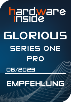 Beim ersten Anschließen der Maus am Computer wurde sie durch die Glorious-eigene Software „Glorious Core“ erkannt und vollständig aufgeladen. Ein verfügbares Firmware-Update wurde automatisch innerhalb weniger Minuten durchgeführt. Die Pollingrate beträgt sowohl im kabellosen als auch im kabelgebundenen Betrieb 1000 Hz. Dank des geringen Gewichts, der kabellosen 2,4-GHz-Verbindung und der geringen Größe konnte die Series One Pro in der Praxis überzeugen. Die herausragenden Gleiteigenschaften gehören zur Spitzenklasse, was neben dem Gewicht auch den abgerundeten PTFE-Pads zu verdanken ist, die bei allen Glorious-Mäusen zum Einsatz kommen.