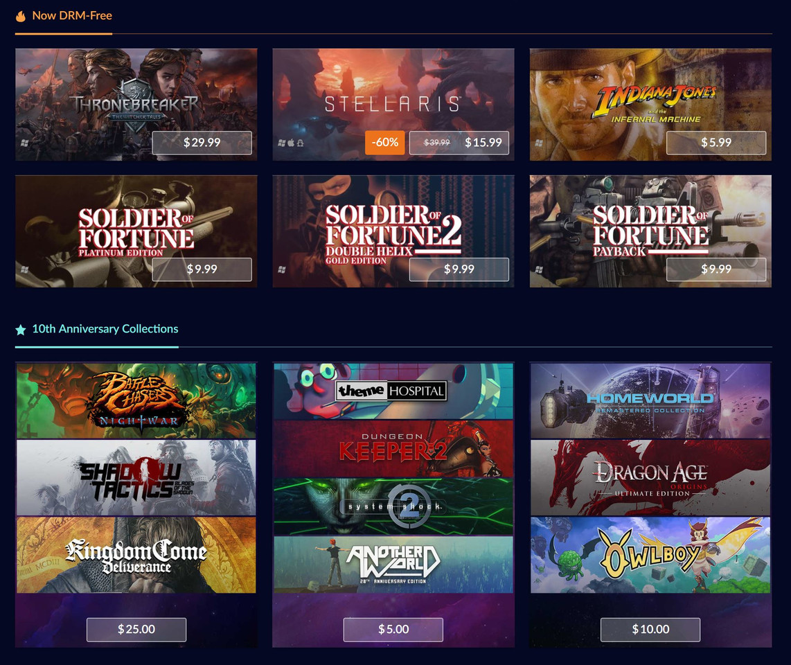 GOG.com (früher Good Old Games) ist heute 10 Jahre alt geworden und hat entschieden, dass es eine erfolgreiche Zeit war, um mit uns den Jahrestag zu feiern. Zunächst einmal wurde die gesamte Website visuell überarbeitet und bietet eine neue Farbpalette sowie Verbesserungen bei der Benutzerfreundlichkeit. Die Änderungen beziehen sich auf die Spielesammlungen und Menüs.