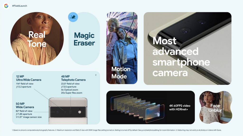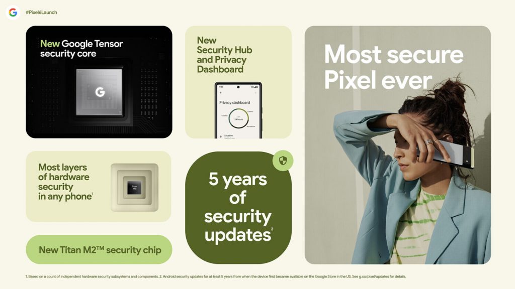 Dementsprechend ist das Phone bis zu 80 Prozent leistungsfähiger als das Pixel 5, was das Laden von Apps beschleunigt und Spiele flüssiger laufen lässt. Zum Google Tensor-Chip verbaut das Unternehmen einen Titan M2 Sicherheitskoprozessor, der Sicherheitsupdates für 5 Jahre garantiert und die aktuellsten Datenschutz- und Sicherheitsfunktionen bietet. Das soll die Privatsphäre von personenbezogenen Daten wie Fotos und anderen Inhalten unterstützen, sodass der User nun in der Lage ist personalisierte Regeln für Mikrofon, Kamera etc. zu definieren.