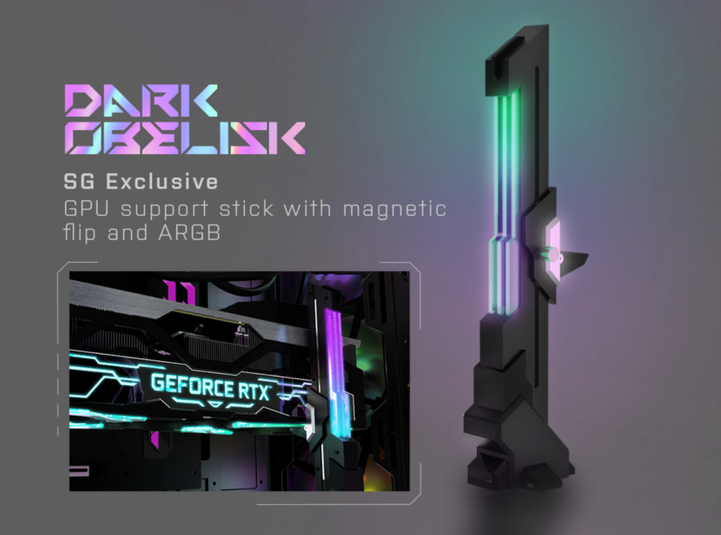 Die Grafikkarten-Stütze ARGB Dark Obelisk ist äußerst stabil und sorgt dafür, dass die Grafikkarte perfekt in Position bleibt, ohne zu wackeln, sich zu neigen oder zu verbiegen. Darüber hinaus ist die RGB LED-Beleuchtung dieser Grafikkarten-Stütze absolut atemberaubend. Sie verleiht dem gesamten PC-Setup eine zusätzliche Dimension und bringt einen Hauch von Eleganz mit sich. Die Farben sind lebendig und die Möglichkeiten, sie an seinen persönlichen Stil anzupassen, sind nahezu grenzenlos.