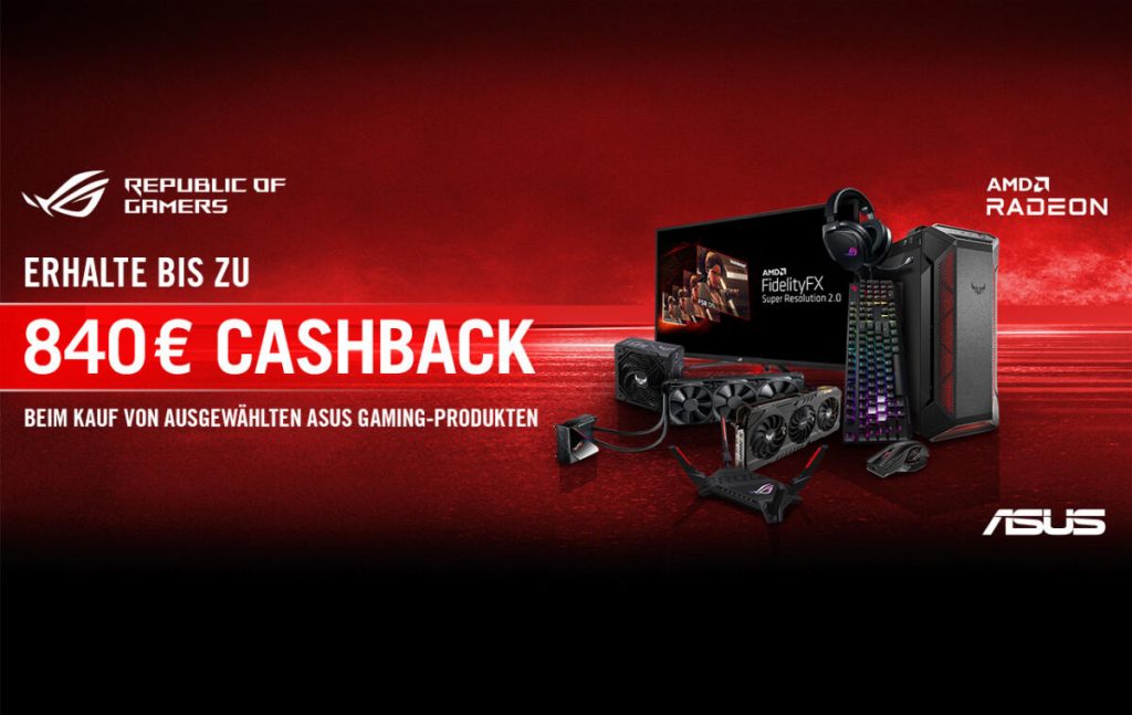 Ratingen, Deutschland, 18. Juli 2022 — ASUS bietet zusammen mit AMD eine große Cashback-Aktion an. Auf ausgewählte ASUS Gaming-Produkten können bis zu 840 EUR oder 860 CHF Cashback erhalten werden. Noch bis Mitte August kann die beliebte Aktion auf Produkten aus den Kategorien Grafikkarten, Monitore, WLAN, Gaming Peripherie, Kühlung und Netzteile sowie Gehäuse gesichert werden. Dazu muss lediglich ein Produkt bei einem der teilnehmenden Händler gekauft werden, und dieser erteilt dem Käufer im Anschluss einen ASUS Code. Dieser Code und die Rechnung wird infolge mittels des Teilnahmeformulars an ASUS übermittelt. Nach Prüfung und Freigabe des Antrags wird das Cashback direkt auf das Bankkonto überwiesen.