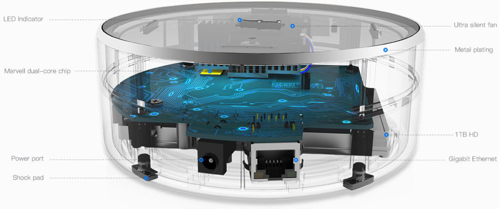- 5 fortschrittliche Technologien: lokaler Speicher, stoßfeste Festplatte, unabhängige Konten mit privaten Räumen und automatisches Backup.
