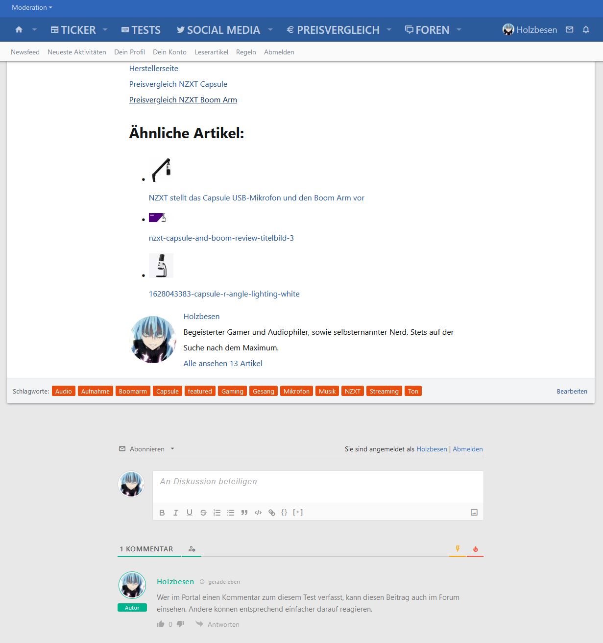 Abseits philosophischer Ansätze heißt das konkret für uns, dass wir eine neue wichtige Funktion integriert haben. Unsere Plattform zur Veröffentlichung von News und Reviews wurde mit der Funktion des Forums verschmolzen. Veröffentlichen wir also entsprechende Artikel, findet ihr diese nicht nur im Portal, sondern auch am Treffpunkt der Community – im Forum. Kommentare werden gespiegelt, vom Forum ins Portal und zurück. Damit es nun möglich, dass ihr als Nutzer besser an unserer Arbeit teilhaben könnt, um eure Meinung zu verschriftlichen. Das sieht dann genau so aus.