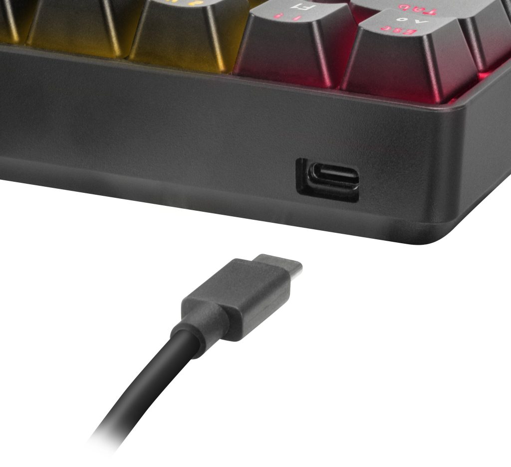 Das Keyboard zeichnet sich durch seine kompakte 60%-Größe aus und die präzisen “Brown Switches“ sorgen für schnelle Reaktionsfähigkeit. Die Switches der Tasten beeindrucken mit einer Lebensdauer von bis zu 50 Millionen Anschlägen.