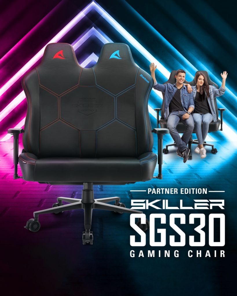 Pohlheim, 01 April 2022 – Sharkoon Technologies, global agierender Anbieter für hochwertige und leistungsstarke PC-Komponenten und Peripherie, stellt mit dem SKILLER SGS30 Partner Edition den weltweit ersten Gaming-Zweisitzer vor. Auf diese Weise wird es Paaren ermöglicht, auch die Zeit beim Gaming gemeinsam zu verbringen. Das Fußkreuz sowie die Gasdruckfeder wurden zu diesem Zweck verstärkt, um somit auch bei zusätzlicher Belastung die gewohnte Qualität des SGS30 genießen zu können. Der Gaming-Stuhl ist als Kunstledervariante in der Farbkombination Rot-Blau verfügbar.