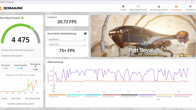 Die Grafik-Benchmarks aus der 3DMARK Suite zeigen schon eine ungefähre Richtung, wohin es mit der Leistung geht. Während des Tests betreiben wir den Laptop im Modus „Leistung“, welchen wir im HP OMEN Hub einstellen. In den Standard-Einstellungen der Benchmarks werden diese in der Auflösung 1.920 x 1.080 Pixel (Full-HD) wiedergegeben. In dieser Auflösung würden demnach auch die meisten Games mit mittleren bis zu hohen Details flüssig laufen. Ob dem wirklich so ist, werden wir uns nachher noch genauer ansehen.