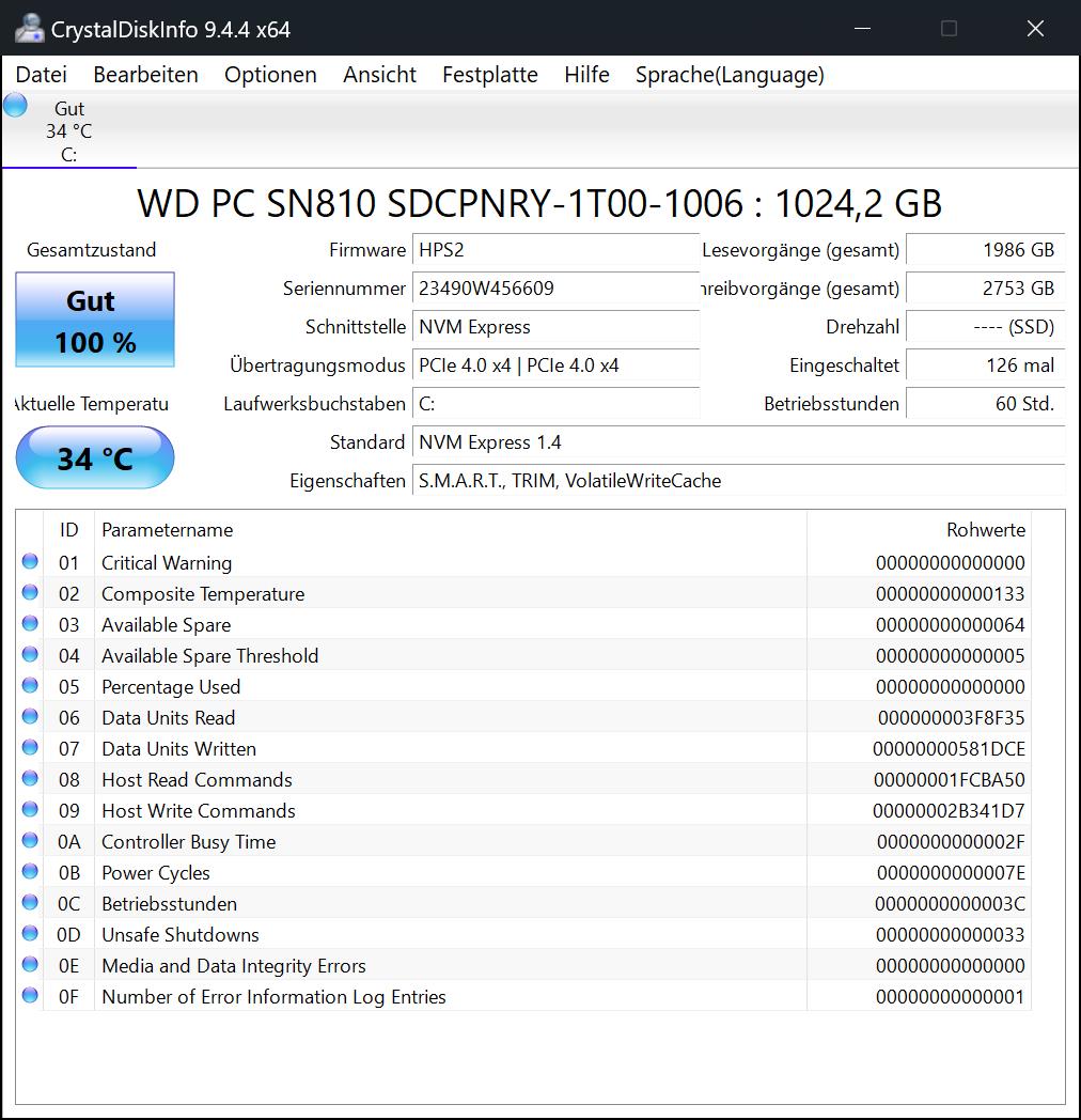 | Massenspeicher | Western Digital SN810, 1 TB |