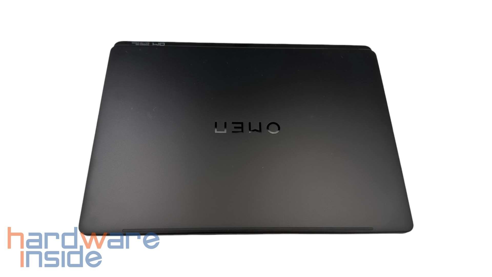Werfen wir zunächst einen Blick auf den Deckel des HP OMEN Transcend 14 Gaming Laptops. Dieser besteht aus mattschwarz lackiertem Aluminium. In der Mitte sehen wir den Schriftzug der Serie. Die Oberfläche wirkt auf uns wertig, jedoch sind sehr schnell Fingerabdrücke sichtbar.