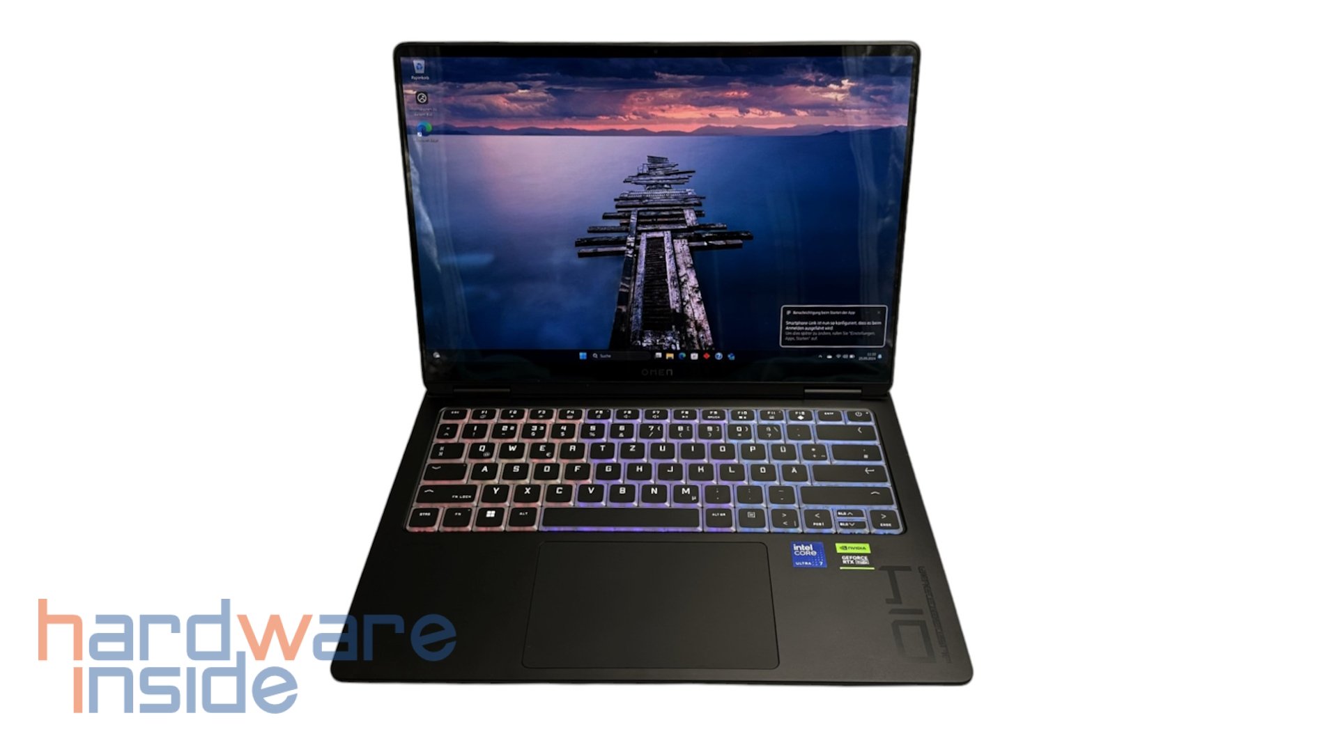 Beim HP OMEN Transcend 14 kommt ein 14“ großes OLED-Display zum Einsatz, welches mit einer Auflösung von bis zu 2.880 x 1.800 Pixeln arbeitet und dabei eine Bildwiederholungsrate von bis zu 120 Hz erlaubt. Mit 400 NITS ist es angenehm hell. Bei der Nutzung draußen könnte das Display etwas heller sein, denn die Sonne sorgt für Spiegelungen auf dem Display. Hier wäre zwar ein mattes Display besser, allerdings sind die Farben mit einer glatten Oberfläche wesentlich schärfer. Insgesamt ist die Bildqualität sehr gut und wie von OLED-Displays gewohnt ist die Farbwiedergabe ausgezeichnet. Dies vor allem in dunklen Szenen, da Schwarz hier auch korrekt dargestellt wird. Oberhalb des Displays befindet sich eine IR-Kamera, welche mit bis zu 1.920 x 1.080 Pixeln bei 30 Bildern pro Sekunde arbeitet. Die Kamera unterstützt Windows Hello – so kann man auch den fehlenden Fingerabdrucksensor verschmerzen. Nach einer kleinen Einrichtungsprozedur muss beim Anmelden lediglich einmal auf den Bildschirm geschaut werden und Windows entsperrt sich sofort. Für Video-Meetings ist die Kamera ebenfalls sehr gut geeignet.