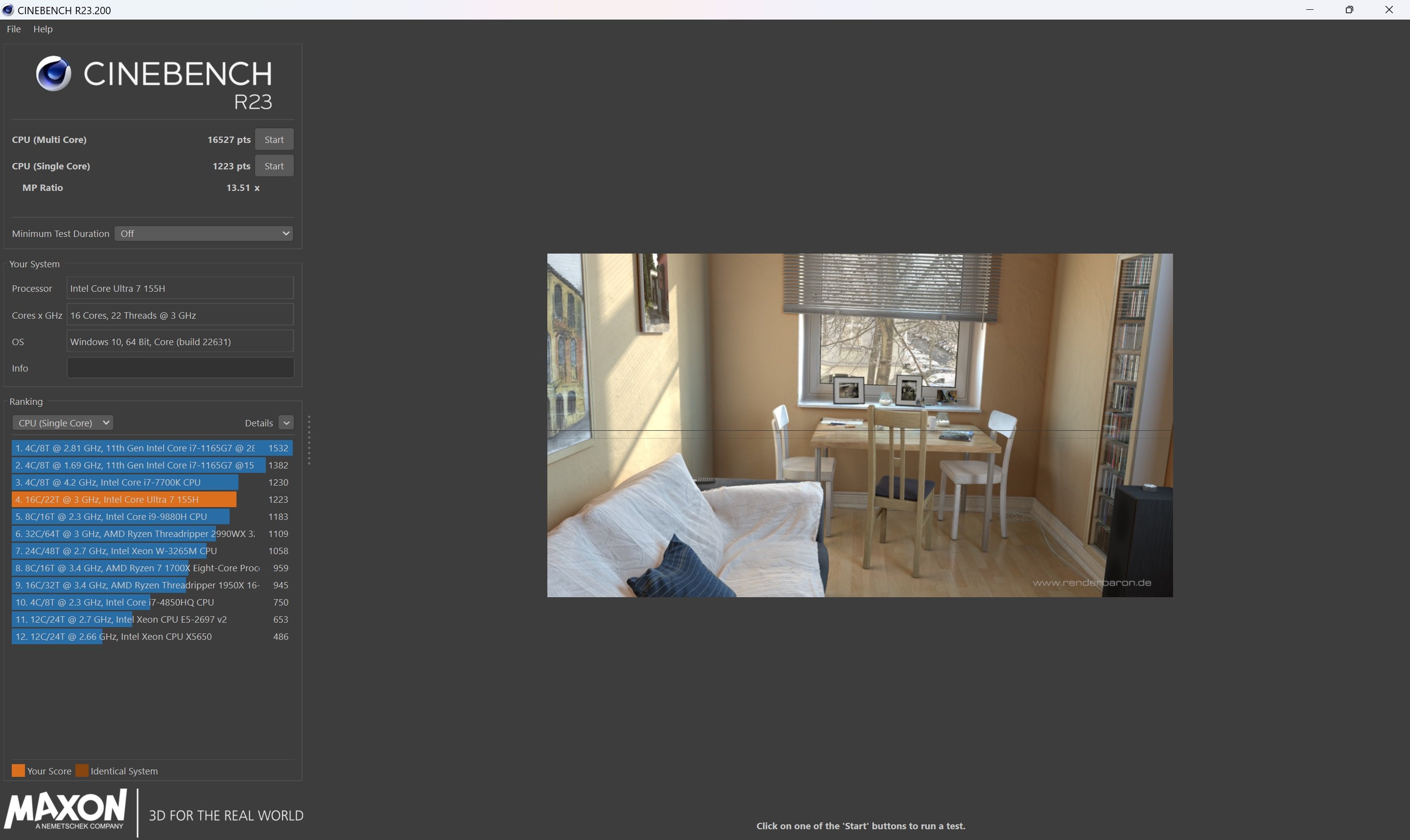 Die Leistung des verbauten Intel Core Ultra 7 155H ist solide. Von der Leistung her sollte dieser Prozessor für viele Anwendungen ausreichend sein. Er erreicht in Cinebench R23 rund 25 % weniger Punkte als ein AMD AI 9 HX 370. Beide Prozessoren sind relativ ähnlich, allerdings ist der Prozessor von AMD auch ein bisschen neuer.