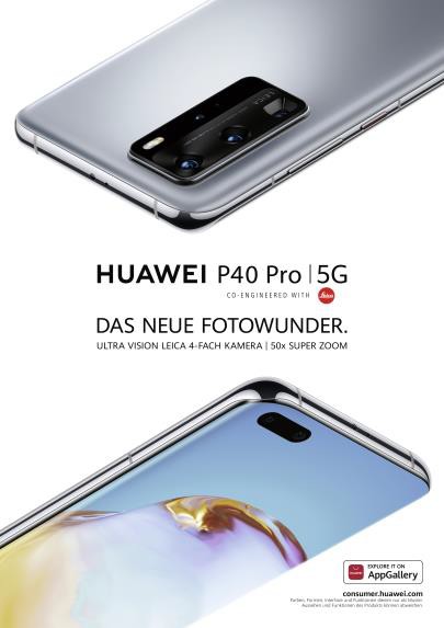 Düsseldorf, 26. März 2020 – Mit dem HUAWEI P40 und HUAWEI P40 Pro präsentiert HUAWEI die High-End-Smartphones der beliebten P-Serie. Die neuen Modelle zeichnen sich durch smarte Kamerainnovationen aus, welche abermals die bisherigen Möglichkeiten mobiler Fotografie und Videografie definieren. Der HUAWEI Kirin 990 5G SoC treibt sie an und unterstützt zugleich den Hochgeschwindigkeits-Mobilfunkstandard 5G sowie WiFi 6 Plus. Von außen beeindrucken die neuen Modelle mit ihrem kompakten Gehäuse im edlen Design. Das HUAWEI P40 Pro verfügt zudem über ein HUAWEI Quad-Curve-Overflow-Display mit halbrunden Kanten.