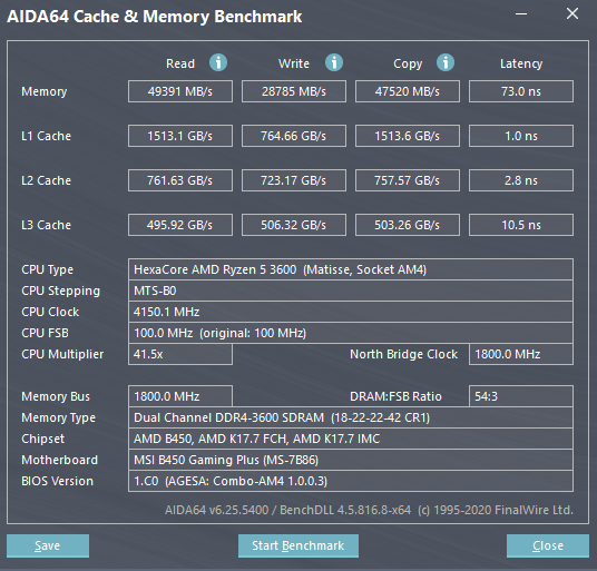 Als Letztes haben wir dann noch das händisch übertaktete Profil. Mit ein wenig Hand anlegen und Spannungsanhebung auf 1.4 V konnten wir den HyperX Predator überreden, mit 3600 CL18 zu booten und den Memtest erfolgreich und stabil zu durchlaufen. Leider mussten wir die Subtimings auf 22-22-42 absenken, da der IMC sonst auch mit 1,45 V den Dienst versagte. Dennoch ist eine Leistungssteigerung zu erkennen und das Profil ist durchaus alltagstauglich. Bei allen Übertaktungsversuchen wurde der RAM übrigens nie wärmer als 41° – was vollkommen unbedenklich ist.