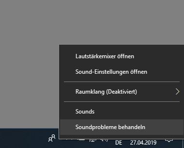 Anschließend klicken wir rechts auf das Lautsprechersymbol in der Taskleiste und wählen hier den Menüpunkt „Sounds“ aus. Daraufhin öffnet sich ein Fenster.