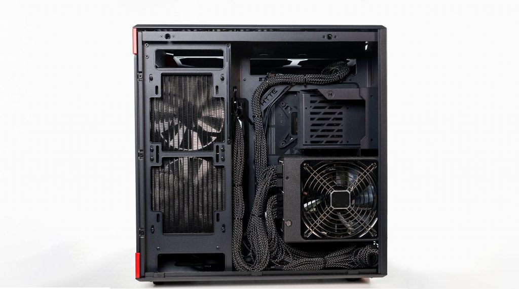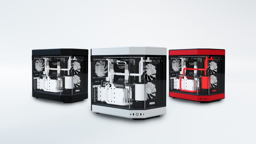 Das einzigartig konstruierte Y60 ATX-Gehäuse verfügt über eine dreiteilige, rahmenlose Front- und Seitenabdeckung aus gehärtetem Glas, die einen ungehinderten Blick auf das Innere des Gehäuses von links, rechts oder der Mitte aus ermöglicht. Wenn die Glasplatten entfernt werden, lenken abgeschrägte Leisten an der Decke und am Boden des Gehäuses den Blick nach innen, wodurch eine moderne Ästhetik entsteht und das System in einem Open-Air-Format präsentiert werden kann. Die Benutzer haben die Möglichkeit, zwischen drei Farbkombinationen zu wählen: Weiß und Schwarz, Schwarz und Schwarz sowie Rot und Schwarz, die am besten zur Ästhetik ihrer Einrichtung passen.