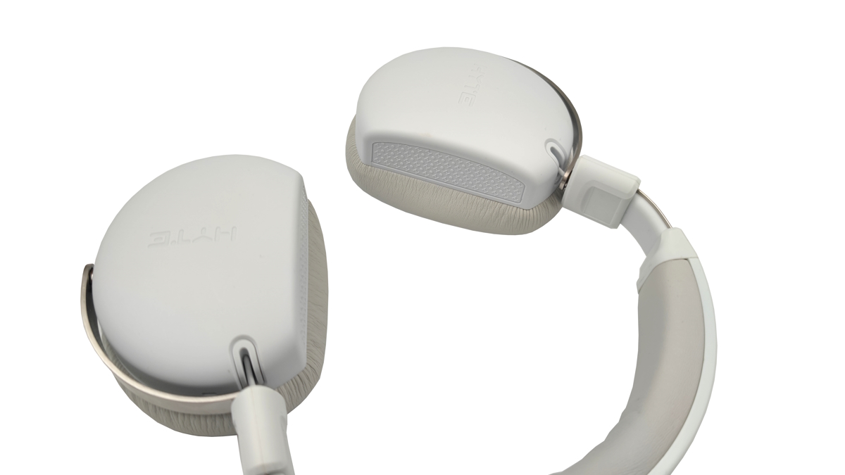 Hyte ist mittlerweile bekannt dafür ungewöhnliche Wege in Sachen Design zu gehen. Dies trifft auch bei Hyte eclipse HG10 zu, denn vor allem die Ohrmuscheln sind deutlich anders gestaltet, als man dies von anderen Produkten kennt. Statt einer ovalen Form sehen wir ein einseitig flaches Design. Auf überrascht für diese Preisklasse ist der Einsatz an Materialien. Natürlich sind die Ohrmuscheln sowie die Abdeckungen am Kopfband weitestgehend aus weißem Kunststoff gefertigt. Doch die Aufhängungen der Ohrmuscheln, das Innere des Kopfbands sowie dessen Verstellung bestehen aus blankem Metall mit einem schönen matten Finish. Die Ohrmuscheln haben durch die Aufhängung einen guten Bewegungsspielraum, so lässt sich das Headset nicht nur flach zusammenlegen, sondern passt sich auch gut an den Kopf an. Alles wirkt stabil und auch scharfe Grade finden wir nicht.