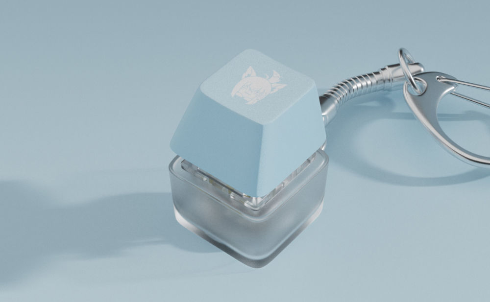 Alle hololive GAMERS-Fans, die das Tastenkappenset kaufen, erhalten als Bonus einen RGB-Switch-Schlüsselanhänger mit vier austauschbaren Tastenkappen mit Fubuki, Mio, Okayu und Korone.