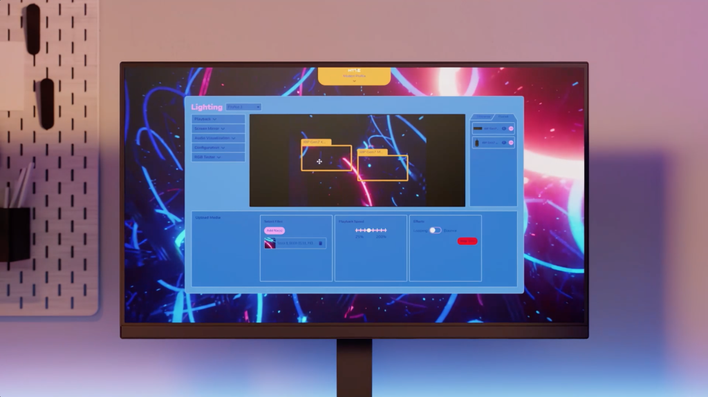 CNVS ist sofort einsatzbereit und wird über ein Typ-C-auf-Typ-C-USB-Kabel mit einem mitgelieferten Typ-C-auf-Dual-Typ-A-USB-Adapter angeschlossen. Nutzer können CNVS über die HYTE-Software Nexus für ihre persönliche Erfahrungen individuell anpassen. Über Nexus kann die CNVS-Beleuchtung mit Musik synchronisiert, Bildschirminhalte gespiegelt, persönliche Animationen eingestellt werden und vieles mehr.