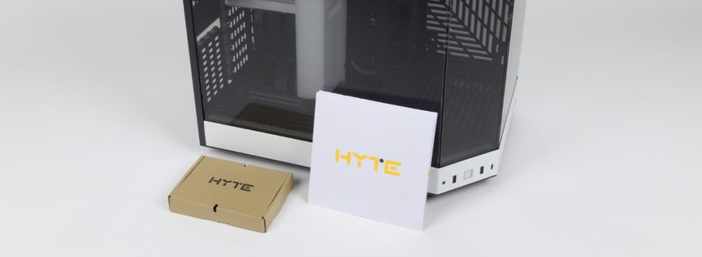 Neben dem Y60 liefert Hyte eine Anleitung zur Erklärung der Features und eine kleine Pappschachtel, in der sortiert Schrauben und Kabelbinder zu finden sind. Ein 4-poliger 3,5 mm Klinkenadapter auf zwei dreipolige 3,5 mm Klinken ermöglicht die Nutzung von Mikrofon und Kopfhörer über den einzelnen vorderen Port. Das auch im Lieferumfang befindliche PCIe-4.0-Riserkabel steckt bereits im Gehäuse, wo es durch etwas Styropor vor Schlägen geschützt wird. Ein solches Riserkabel ist bei den meisten Gehäusen und Herstellern rein optional, muss also zusätzlich erworben werden. Das ist bei der späteren Überlegung zum Preis mit einzukalkulieren.