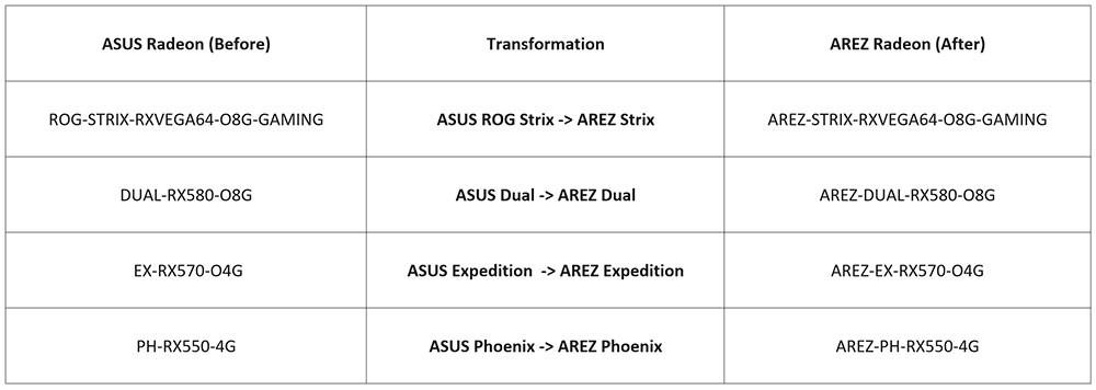 Der taiwanesische Hersteller ist voll und ganz der Entwicklung der Radeon-Produkte verpflichtet. Das AREZ stand damals für die Reihe von Dual-GPU-Grafikkarten, die historisch auf AMD GPUs ausgerichtet waren. Wenn die Gerüchte wahr sind, werden die Modelle Strix, Dual, Phoenix und Expedition Radeon unter das neue AREZ-Branding fallen. ASUS könnte sogar so weit gehen, ihren Namen komplett aus den AREZ-Modellen zu entfernen.