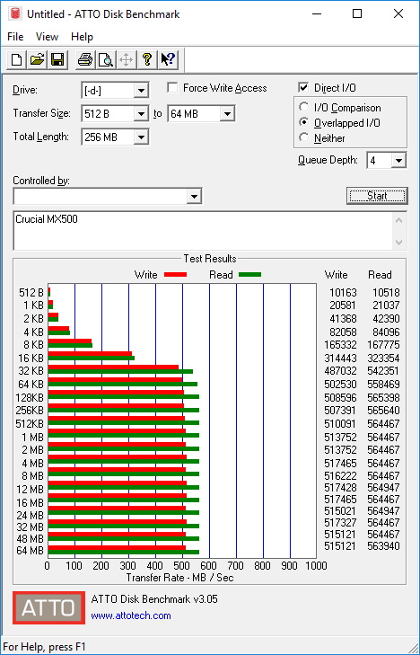 Der ATTO Disk Benchmark bestätigt die vorigen Ergebnisse noch einmal.