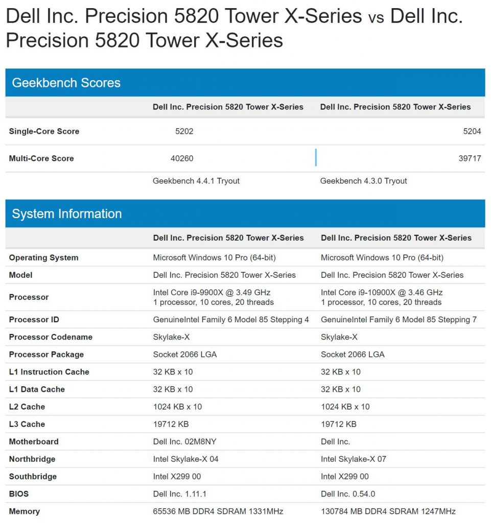 Geekbench-Tests, die auf dem Chip durchgeführt wurden, zeigen, dass er etwa auf dem Niveau des i9-9900X arbeitet, wobei der 200 MHz Speed-Bump eine marginale Verbesserung der Multi-Threaded-Leistung erwarten lässt. Wo das Silizium „Cascade Lake-X“ voraussichtlich „Skylake-X“ übertreffen wird, ist seine Unterstützung für DLBoost, eine On-Die-Hardware mit der festen Funktion Rechen-Matrizen zu vervielfachen und dem verbesserten Aufbau & Ausbildung von KI DNN, was sicherlich die Preise erhöhen wird. Es wird jedoch erwartet, dass Intel seine HEDT-Prozessoren der nächsten Generation aggressiv mit fast der doppelten Menge an Kernen pro Dollar veröffentlichen wird.