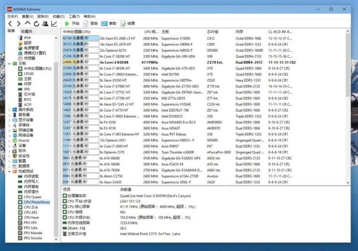 Das genutzte Mainboard ist mit einem Z370 Chipsatz bestückt. Das heißt, ihr braucht auf jeden Fall ein neues Mainboard um die neue Coffee Lake CPU in eurem System nutzen zu können. Solche News mag die Gamercommunity gar nicht, doch Anbetracht des enormen Leistungsschubs, wäre eine Investition in ein neues Mainboard nicht so hart. Intel hat in der letzten Zeit ordentlich Fortschritte gemacht um den Hype um AMDs neue CPUs ab zu schwächen. Solange die Coffee Lake CPUs einen guten Preis haben, wird das eine gute Chance für Intel sein, sich gegen die AMD CPUs zu währen. Wie auch immer, wir werden erstmal sehen müssen, wie viel Performance der i3-8350K in Spielen bringen wird. Denn synthetische Benchmarks und Gaming-Benchmarks erzählen oft eine unterschiedliche Geschichte. Wir haben alle Screenshoots von AIDA64 veröffentlicht, damit ihr euch eine eigene Meinung bilden könnt.