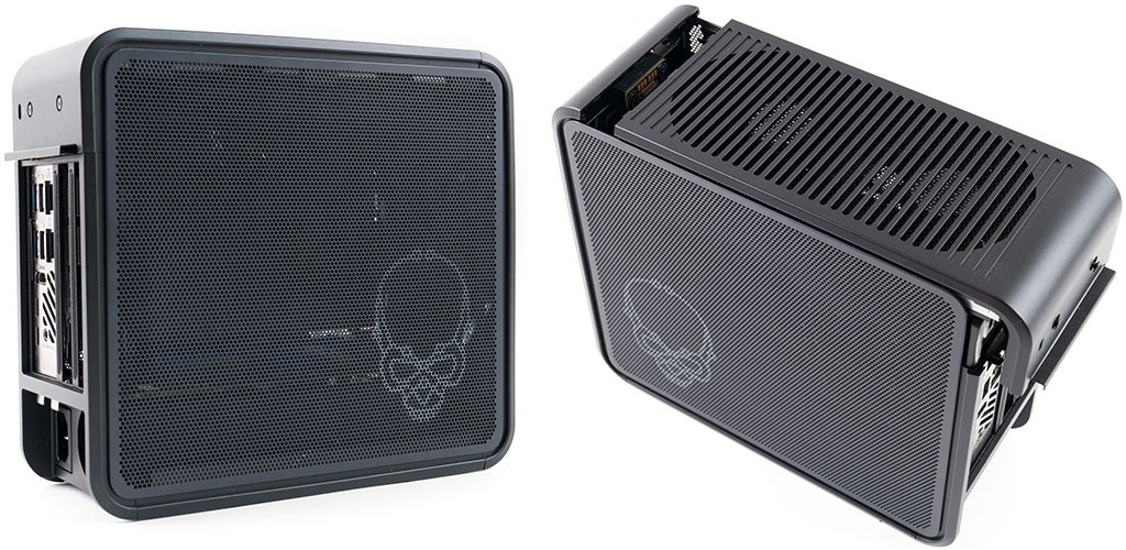 Diese spezielle Konfiguration misst 238 x 216 x 96 mm (5,0 l), ist also ein bisschen größer als einige frühere NUCs (die bisher größte überhaupt). Käufer haben die Wahl zwischen drei verschiedenen Intel 45W-Prozessoren der 9. Generation, darunter ein Core i9-9980HK, ein Core i7-9750H oder ein Core i5-9300H.