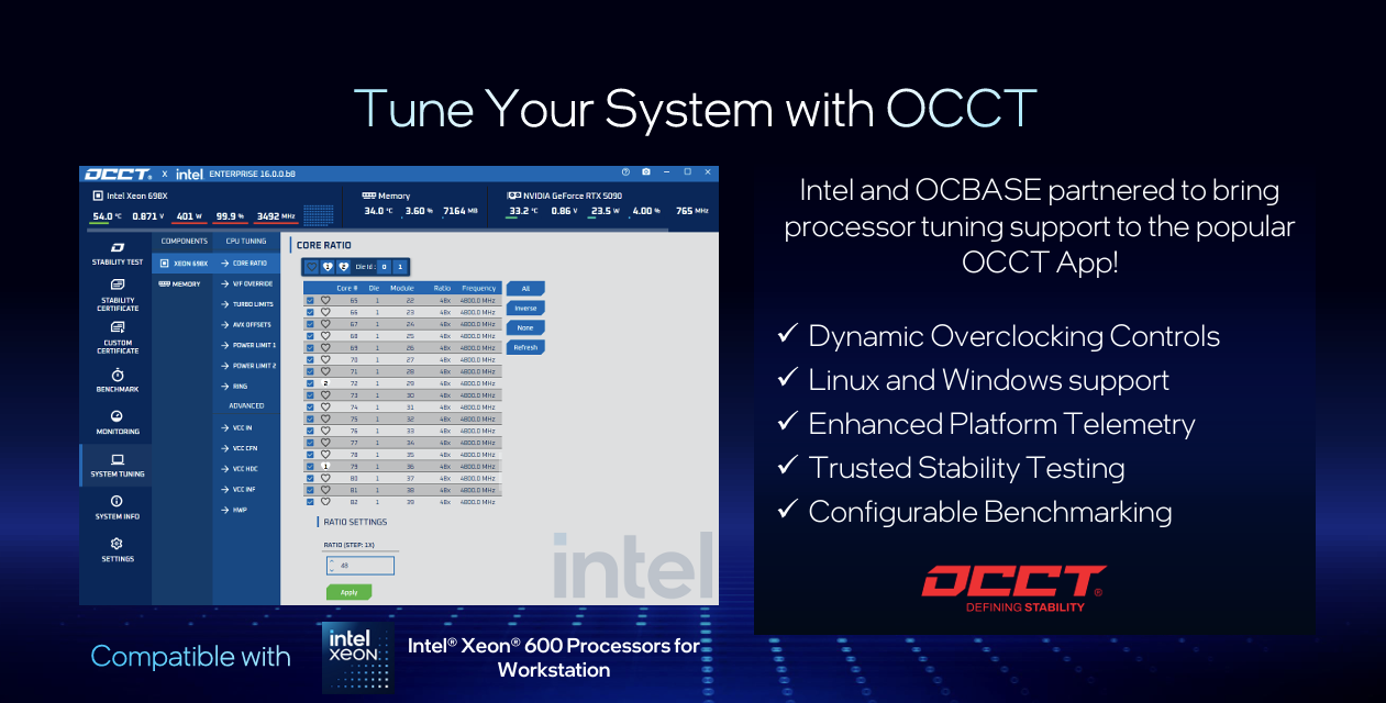 Alle Modelle unterstützen DDR5-6400 und Intel vPro, ausgewählte Varianten sind zudem übertaktbar. Gefertigt werden die CPUs im Intel-3-Prozess mit Redwood-Cove-Kernen, was für bessere Effizienz sorgt. Gegenüber Sapphire Rapids verspricht Intel bis zu 9 % mehr Single-Thread- und bis zu 61 % mehr Multi-Thread-Leistung.